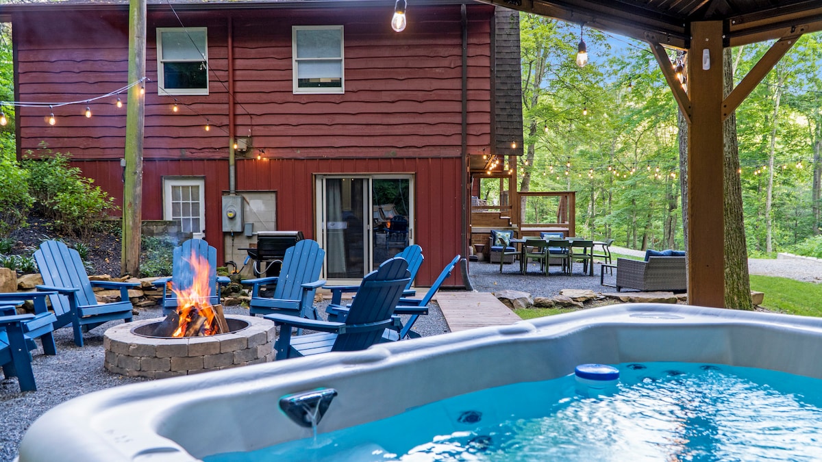 Bienvenue dans un chalet de montagne moderne spectaculaire à Hocking Hills, Ohio, sur 4 acres privés mettant en valeur des hébergements luxueux tout en étant entouré par la nature. Que vous planifiiez une escapade privée, une réunion de famille ou un rassemblement d'amis spéciaux, la cabane I'll Have S'More est l'endroit idéal ! Cette cabane spectaculaire à flanc de colline surplombe une prairie et un ruisseau avec des formations rocheuses à couper le souffle. Créez des souvenirs dans cette incroyable cabane, préparez-vous à un séjour inoubliable !