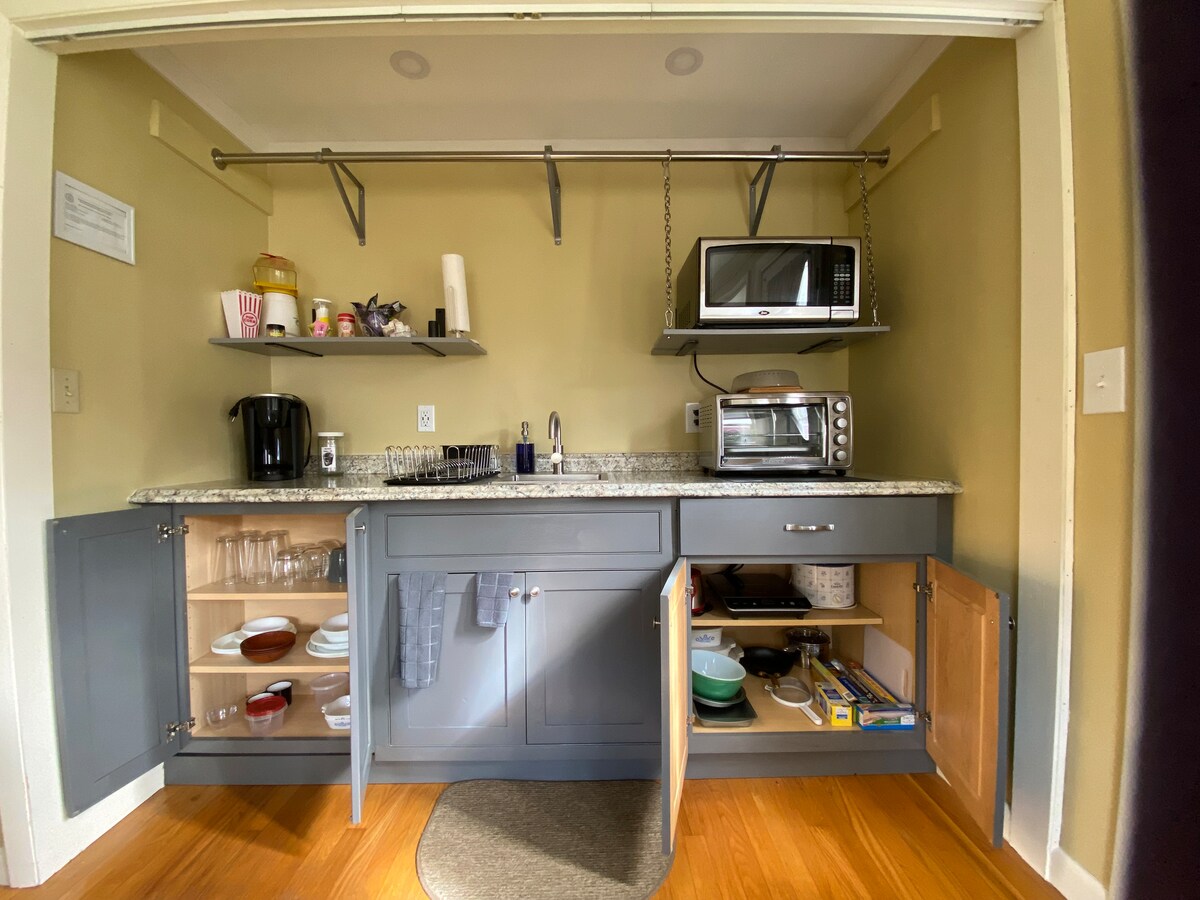 Venez explorer notre région unique et séjourner dans un studio rénové et lumineux avec entrée privée, terrasse isolée, kitchenette et salle de bain situé dans le pittoresque village de Shelburne Falls, dans le New England. Nous sommes à distance de marche de nombreux magasins, bowling, Glacial potholes, courts de tennis/basketball, Bridge of Flowers, restaurants, Pothole pictures, épiceries, terrains de jeux, zones de randonnée et de baignade, magasin d'aliments naturels et galeries d'art. Près de Berkshire East et Zoar !