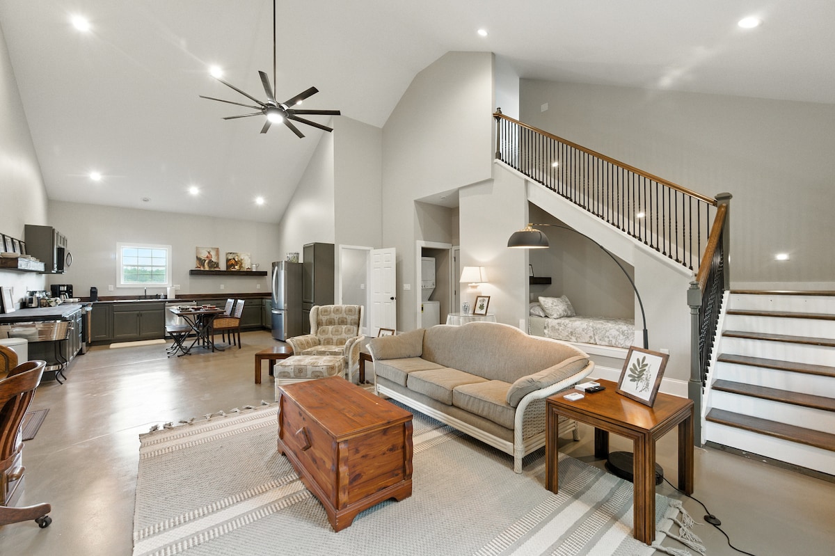 Venez séjourner dans notre appartement privé situé au niveau de la terrasse de notre maison. Conçu pour le confort, cet appartement d'une chambre est la retraite parfaite pour votre séjour à Gainesville. L'appartement dispose d'une cuisine complète, d'un lit king size et d'un espace de travail dédié. Vous adorerez la salle de bain avec douche à l'italienne. Profitez d'un Nespresso matinal ou d'un verre de vin le soir tout en repérant des cerfs sur la terrasse privée. Pendant que nous vivons au niveau supérieur, votre entrée et votre espace sont privés.