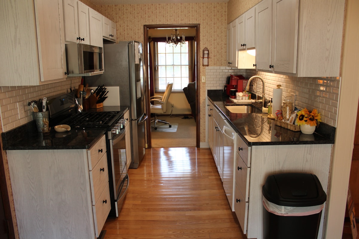 Intérieur récemment rénové (nous travaillons encore sur l'extérieur !!) à deux pâtés de maisons de Walmart et à deux pâtés de maisons de Washington Street. Bon stationnement dans la rue et ailleurs. Magnifique plan d'étage ouvert pour accueillir une famille ou tout simplement un hébergement confortable. Nous allons être aussi accueillants que possible pour les animaux de compagnie, mais n'hésitez pas à nous contacter si vous amenez des animaux de compagnie (type, taille et nombre) avant de réserver. Nous avons de la moquette dans la pièce de devant et dans les chambres. MERCI !