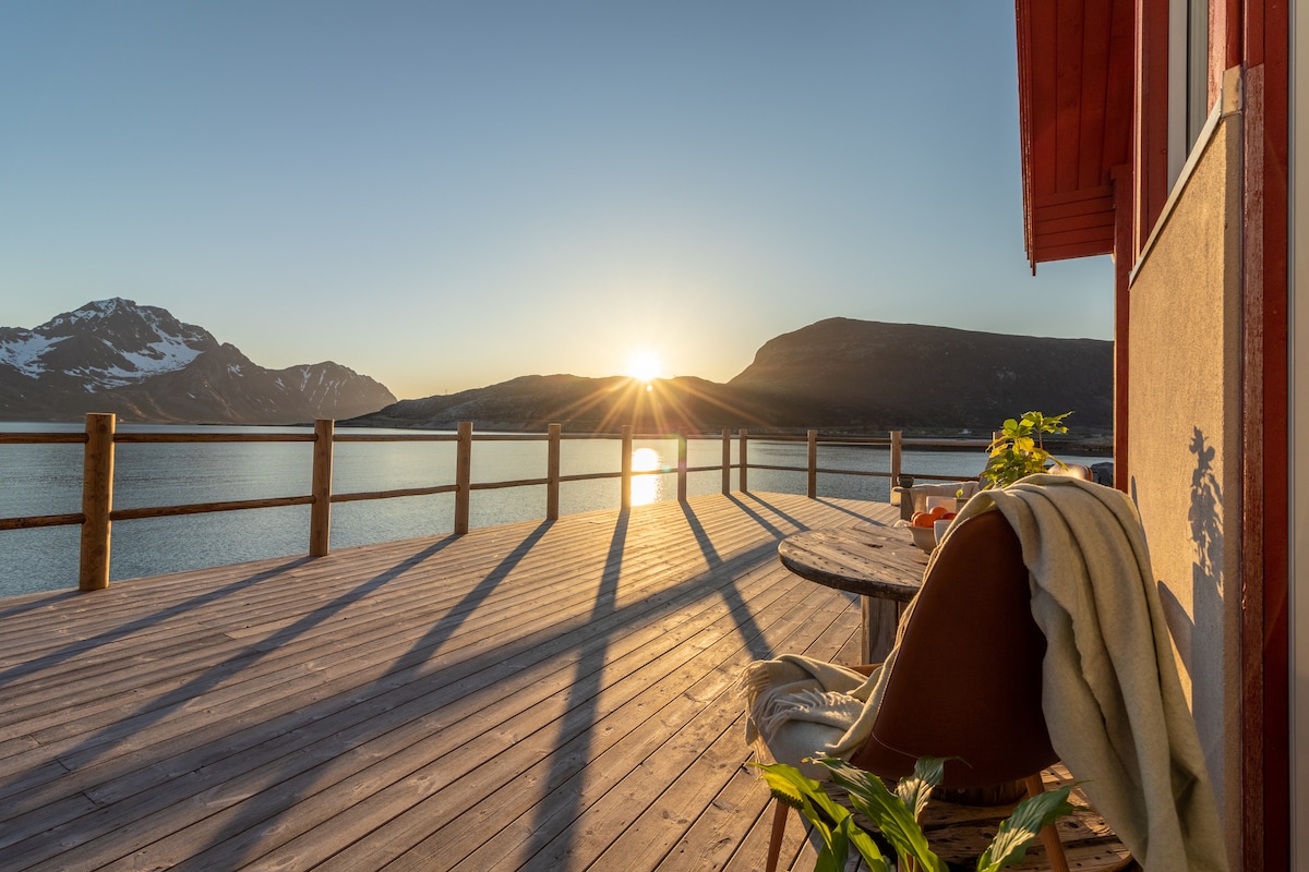 Vol direct de l'aéroport d'Oslo (OSL) à l'aéroport de Leknes Lofoten (LKN) ou à l'aéroport de Svolvær Lofoten (SVJ) Fredheim cabin Lofoten, à 45 minutes en voiture de LKN ou SVJ. Isolé et calme, très privé. Panorama sur le front de mer. Bel emplacement au milieu des Lofoten. Parfait pour explorer tous les points forts locaux. Découvrez une lumière spectaculaire de l'Arctique au milieu de l'été. Admirez les aurores boréales en hiver.