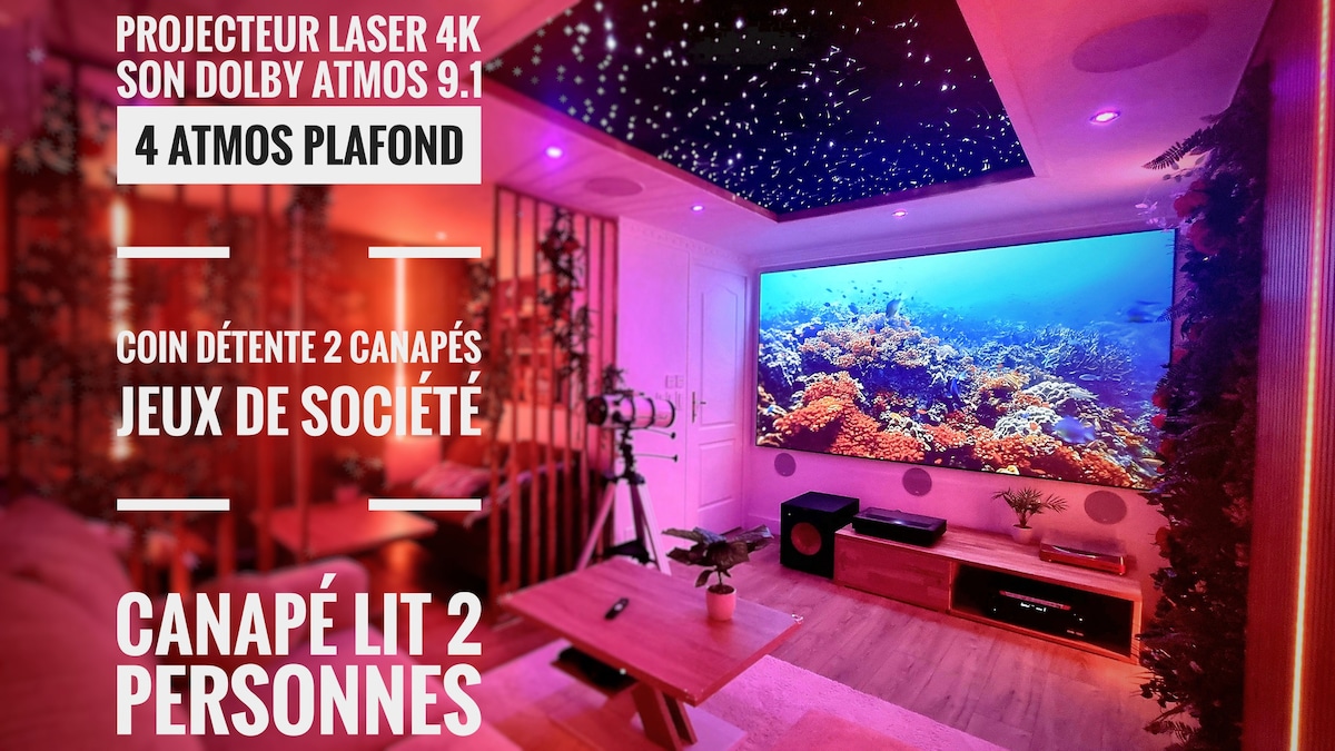 Ce n'est pas simplement un Airbnb. C'est une immersion totale : TOUT INCLUS dans le prix, toute l'année : 1H DE SOIN PAR UNE MASSEUSE PROFESSIONNELLE 15 ANS D'EXPERIENCE Jacuzzi Sauna Cinéma 110" et son Dolby Atmos avec Canapé-Lit Bateau gonflable, rivière à 200m Télescope Salon de Jardin Barbecue 3 Climatisations 2 TV, dont 1 en 65 pouces 4K Nintendo Switch Netflix Disney+ Apple TV Literie et Oreillers Mémoire de Forme Machine à laver Friteuse, Four Se ressourcer. Vous êtes arrivés.
