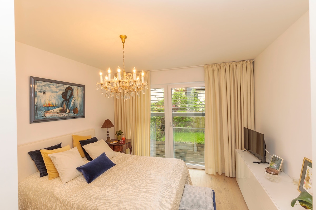 Bel appartement bien entretenu avec de vieux parquets au rez-de-chaussée d'une maison datant de 1938. L'appartement se compose d'une chambre (lit 180 cm), d'un salon, d'une salle de bain et d'une garde-robe. Une tonnelle confortable est à ta disposition devant ta porte d'entrée. L'appartement est aménagé comme je l'aime quand je suis invité : dans le vestiaire, il y a de la place pour deux grandes valises, il y a beaucoup de possibilités pour accrocher des choses. L'ambiance est colorée, individuelle et ludique.