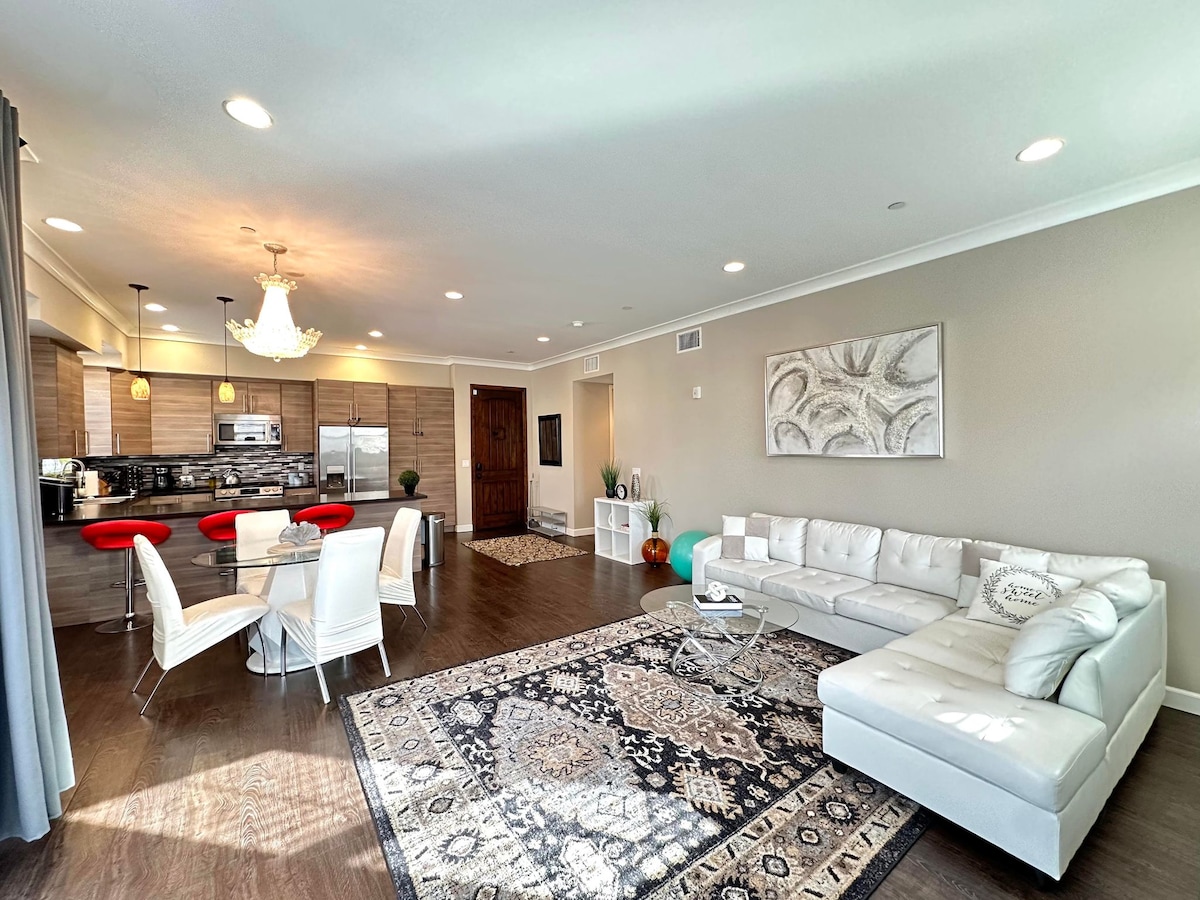 Luxueux, lumineux, calme et élégant 3 CH 2 SAL dans le centre-ville de Pasadena. Ce condo nouvellement construit dispose d'une superbe cuisine complète et d'un grand espace pour se détendre, se concentrer et se sentir comme chez soi. Parking, arrivée autonome, ascenseur, Internet haut débit, climatisation, lave-linge séchant et tous les équipements essentiels sont fournis pour rendre votre séjour aussi confortable que vous le souhaitez.