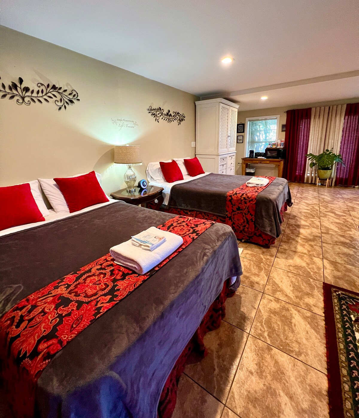 Parking gratuit sur place et recharge VE disponible. Logement privé avec entrée privée et patio privé. Kitchenette avec thé/café Keurig, réfrigérateur et micro-ondes, donc identique à une suite d'hôtel 5 étoiles – avec boissons et collations gratuites. Les parties les plus populaires de ce logement sont l'emplacement et le patio privé avec canapé, chaise longue et palmiers au-dessus ! Des dizaines de boutiques, cafés, bars, restaurants, même Hollywood Boulevard, tous accessibles à pied. ☺️ Il est permis de fumer À L'EXTÉRIEUR sur votre patio privé.