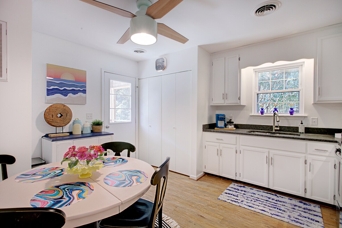Détendez-vous ou allez-y ! Le Nook est un chalet élégant et confortable avec un grand espace intérieur/extérieur. Avec vue sur l'eau et accès, y compris la jetée et la rampe de bateau, profitez de votre café sur le pont avant de prendre l'eau dans l'un des deux kayaks ou canoës ou de profiter d'une balade à vélo (4 disponibles) pour vous rapprocher de la nature. Attrapez des poissons, des crabes ou juste un coup de soleil tout en profitant du temps sur l'eau. Lorsque vous êtes prêt, il y a beaucoup de magasins, de restaurants et de plages dans les villes voisines ! Le tout couronné d'un coucher de soleil sur l'eau !