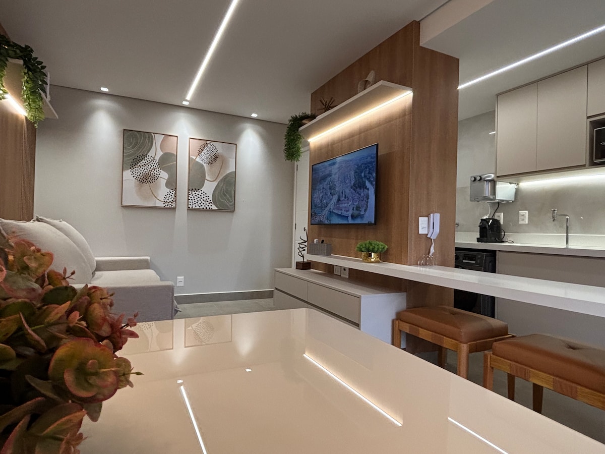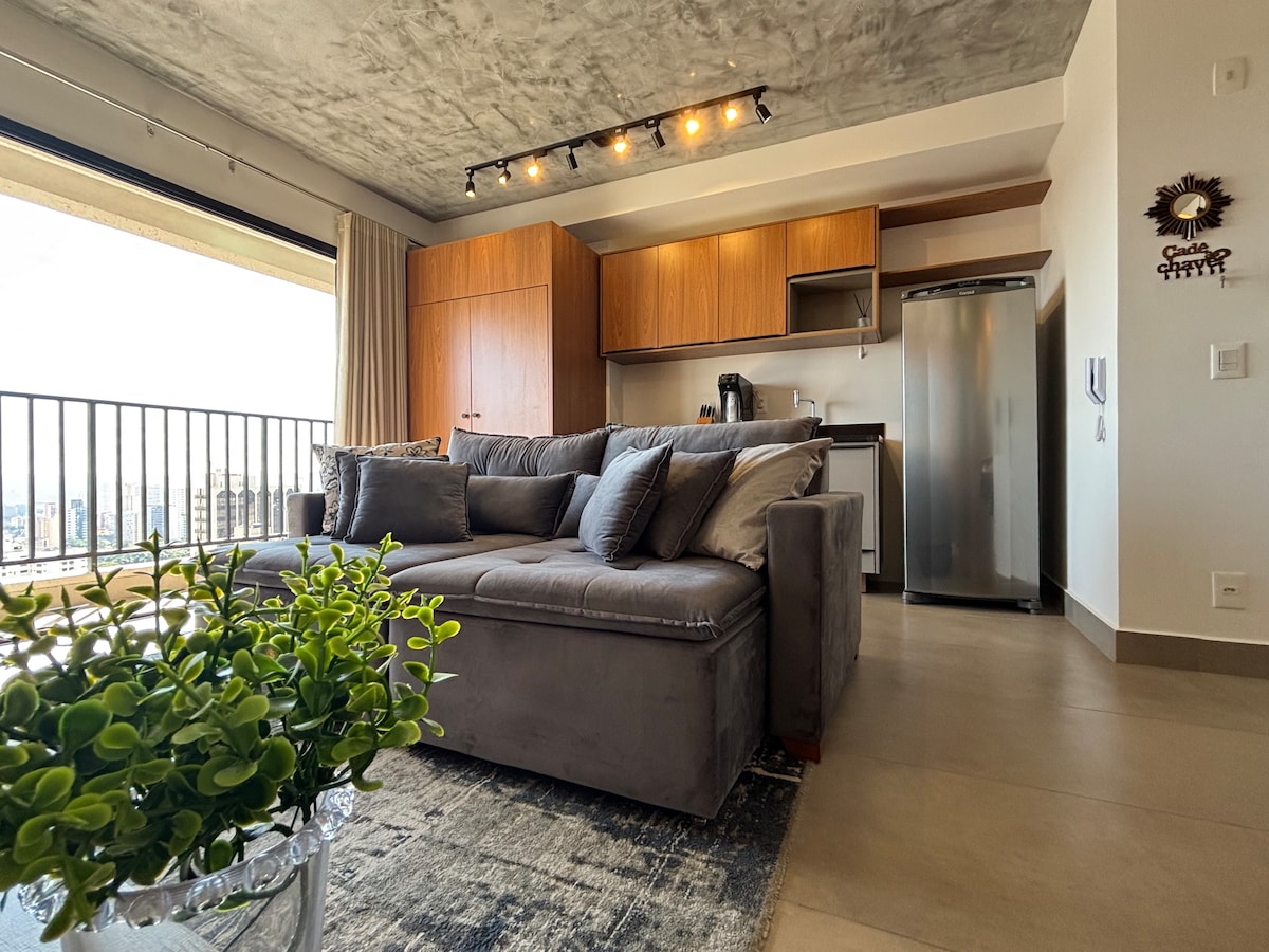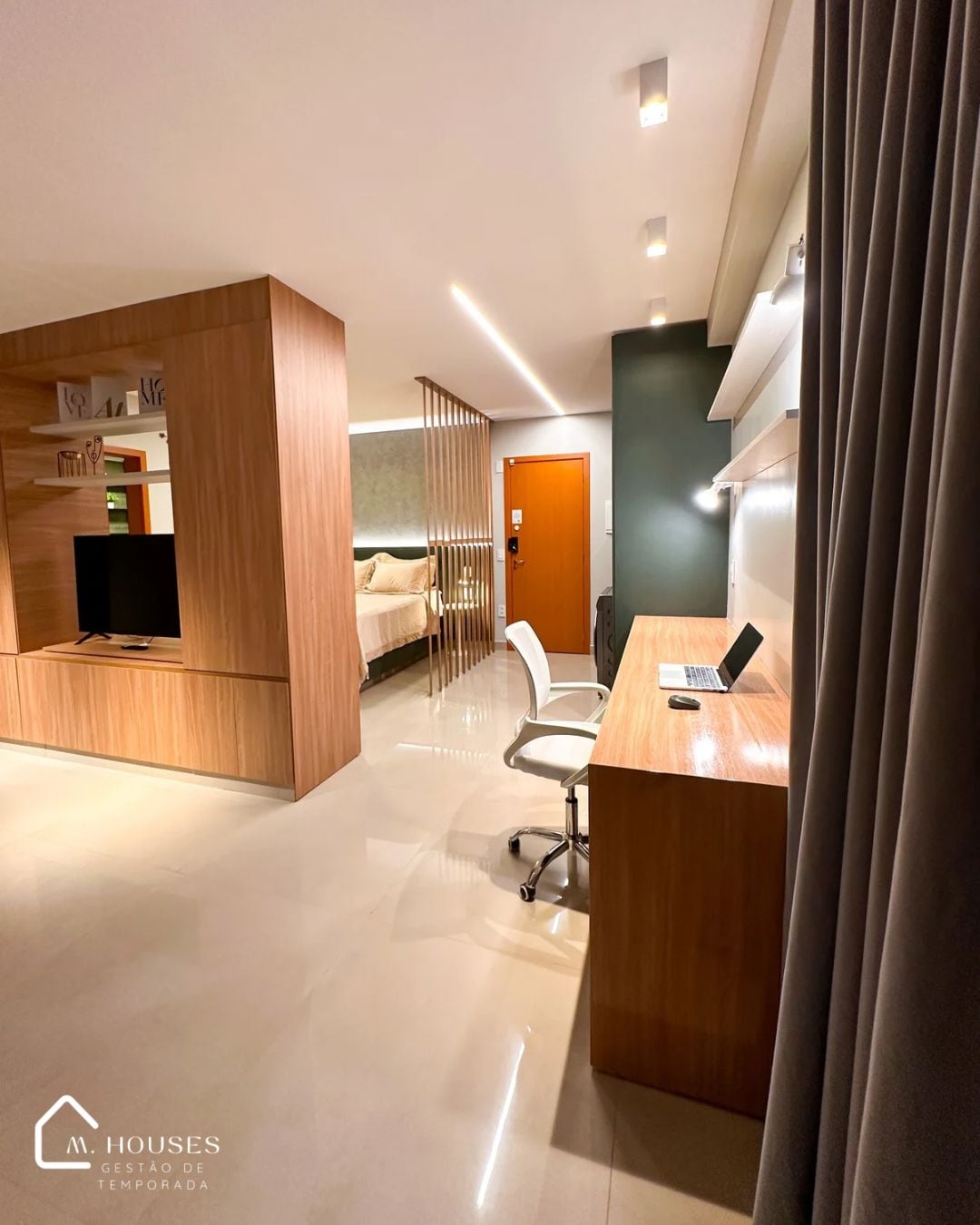 Apartamento moderno e aconchegante no coração da cidade. Desfrute de uma estadia confortável e elegante neste apartamento totalmente mobiliado, com design contemporâneo e acabamento de alto padrão. O espaço conta com uma sala acolhedora com TV e ar-condicionado, quarto com cama queen, banheiro moderno, cozinha completa e área de trabalho ideal para home office. Perfeito para quem busca praticidade e conforto, seja para curtas ou longas estadias.