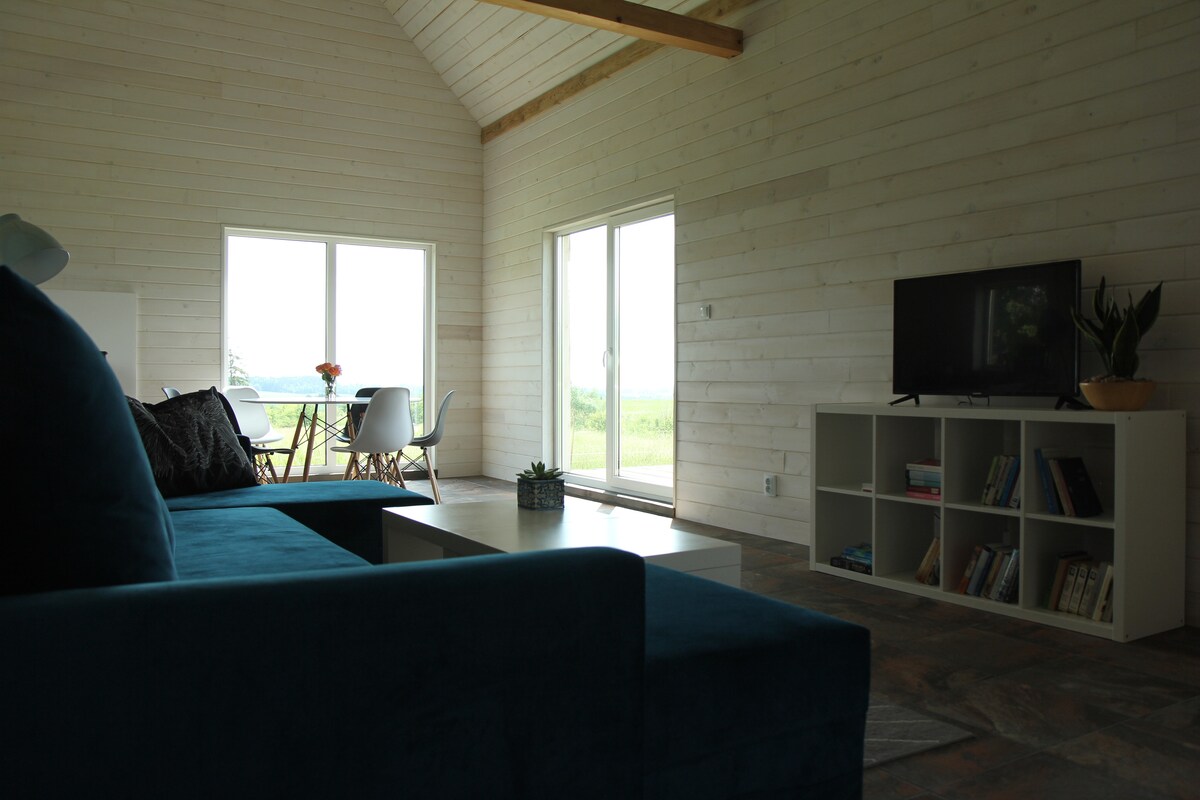 Maison en bois de style scandinave, simple et fonctionnelle, située sur une île entourée d'un étang. Un endroit très calme et paisible loin de l'agitation. Une attraction supplémentaire est l'élevage de Daniela qui se déplace librement dans l'établissement (vous pouvez les nourrir avec des carottes :). Maison chauffée par une cheminée. Possibilité de réserver en privé. Nous avons aussi une cuisine pendant la saison estivale qui sert de délicieux repas !