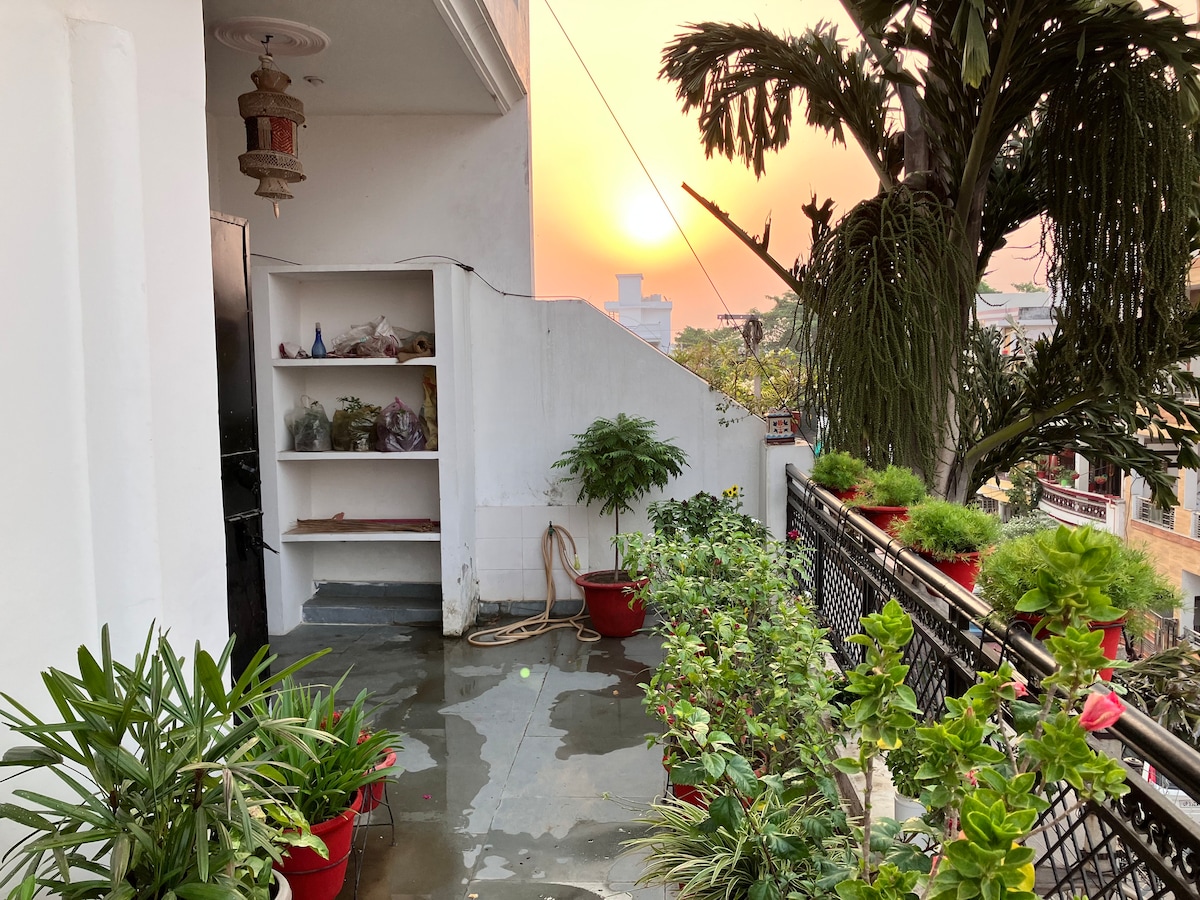Chambre élégante dans une villa avec vue sur le jardin Détendez-vous dans notre chambre de villa sereine et ensoleillée nichée au cœur de la ville. Cette chambre privée spacieuse dispose d'un lit king size moelleux, d'une salle de bain attenante et d'un décor rustique charmant. Les portes s'ouvrent sur un patio privé donnant sur des jardins luxuriants, parfait pour le café du matin. Idéal pour les couples, les voyageurs en solo ou les nomades numériques à la recherche de confort, d'intimité et d'une escapade paisible, mais à seulement quelques minutes des attractions et des cafés locaux. Plats personnalisés faits maison mughlai