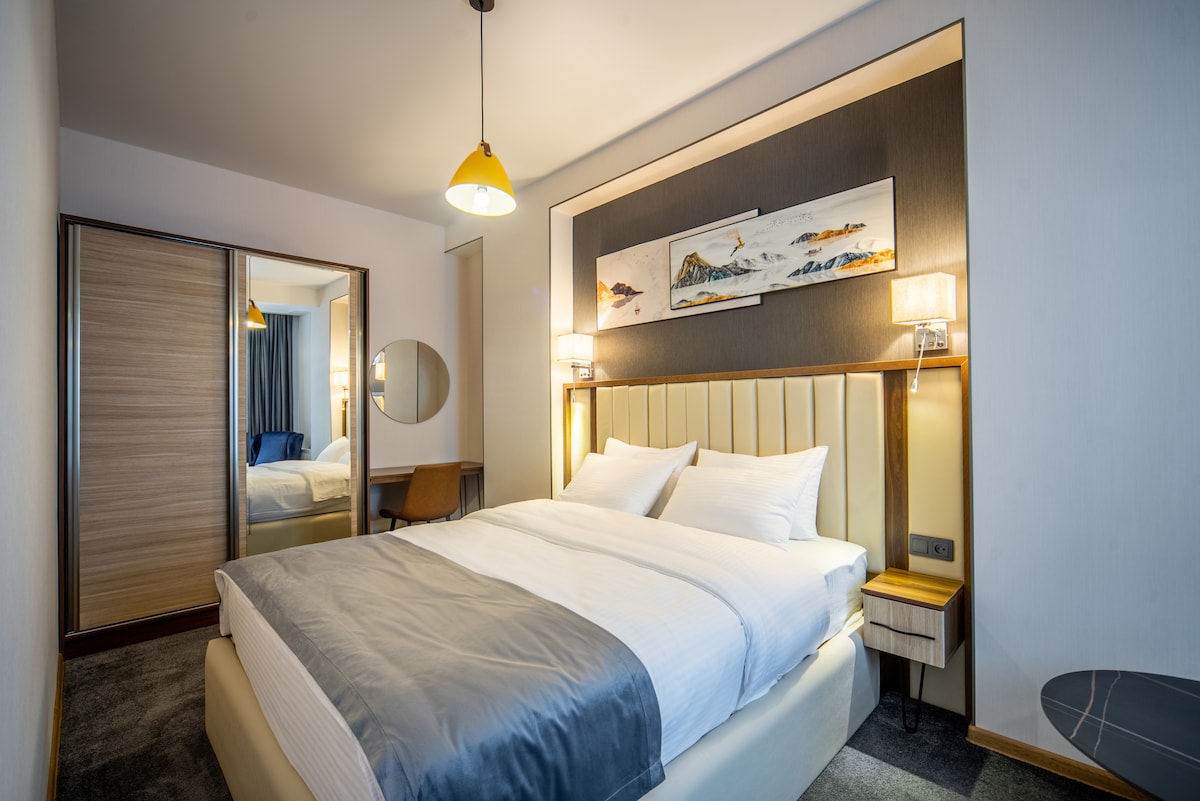 2+1 Apartment in Crystal loft 4-star property, set in Bakuriani. It offers ski storage space, a 24/7front desk and free WiFi. Guests can use the spa and wellness centre with a gym, sauna, and hot tub, as well as a restaurant and supermarket within the walking distance. Aparment has a balcony with a mountain view, a private bathroom, a flat-screen TV, bed linen and towels, a kitchenette with fridge. It is located 700 metres from the Didveli ski slope and 300 meters from Crystal summer park.