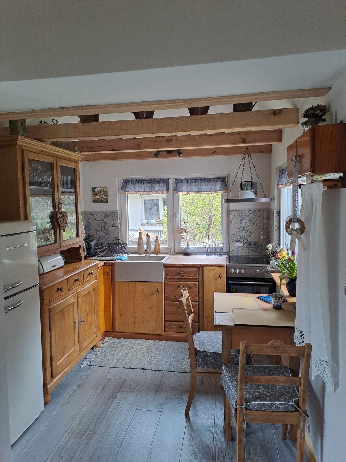 En tant que luthiers professionnels, nous avons le sens du détail. Dans notre appartement d'hôtes, des éléments baroques stylés de l'époque de la construction de la maison se combinent avec un équipement aussi moderne que possible. Cette combinaison garantit l'authenticité et le confort. Lors de la rénovation, nous avons essayé de préserver autant que possible la substance d'origine. Avertissement pour les personnes de grande taille : une poutre de plafond basse datant de 1775 traverse la pièce.