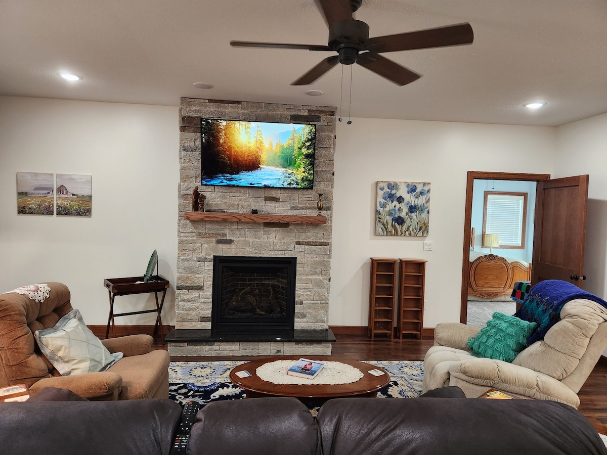 Bienvenue dans notre maison spacieuse. Nous vous invitons à entrer dans une maison merveilleuse avec un espace de vie ouvert. Installez-vous confortablement sur le canapé et regardez vos émissions Netflix préférées avec l'Internet local le plus rapide ou asseyez-vous et regardez la danse du feu dans la cheminée. Cuisinez dans votre propre cuisine approvisionnée. Plongez dans le lit moelleux après avoir vu nos sites locaux Bailey Yard, Buffalo Bill's Ranch ou le quartier Canteen au centre-ville. N'oubliez pas le grand porche avant pour votre tasse de café du matin. Ou détendez-vous sur le patio arrière au coin du feu.