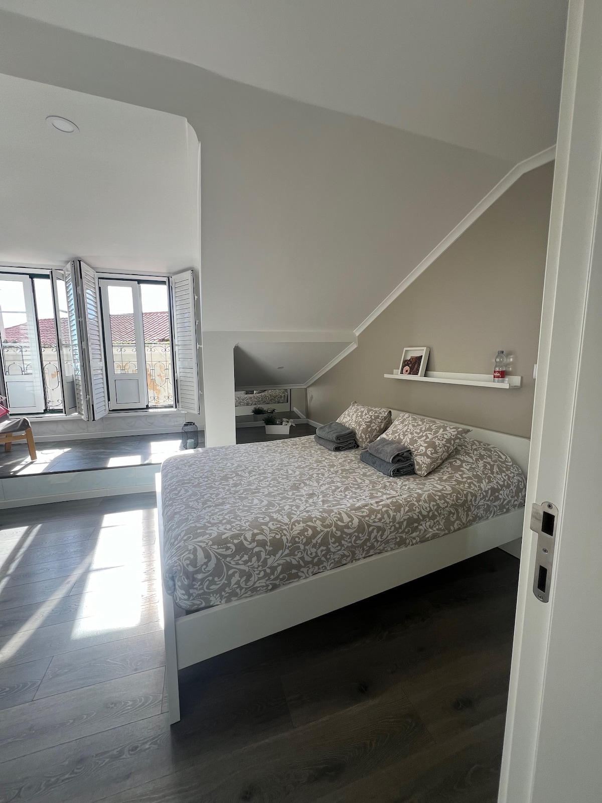 Vous recherchez quelque chose de moderne avec une vue imprenable sur le Tage ? Évadez-vous sur la colline et vivez localement à Lisbonne. Vous adorerez le décor moderne et élégant. Des sols polis, un mobilier à la mode et une cuisine moderne ouverte. Pour couronner le tout, il y a une spacieuse cour commune. Nous pensons que c'est idéal pour un couple qui cherche à échapper à l'agitation. Vous serez dans un bâtiment historique totalement rénové, dans un quartier charmant, sur l'une des 7 collines, et avec beaucoup d'endroits pour admirer la vue sur la ville.