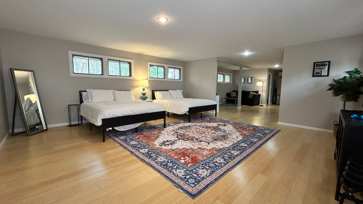 La Serenity Suite est un studio de 230 pieds carrés créé en 2022. Un îlot de cuisine avec 2 tabourets de bar se trouve au centre de l'espace. Il peut servir de coin repas ou d'espace de travail dédié. La salle de bain 3/4 dispose d'accessoires modernes et de serviettes douces et absorbantes.