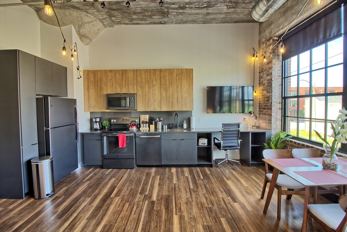Faites comme chez vous dans l'appartement historique soigneusement restauré situé au cœur de St. Louis City qui possède à la fois des éléments historiques et modernes. Vous serez à quelques minutes de toutes les principales autoroutes, restaurants, attractions et divertissements que la ville peut vous offrir. « Venez séjourner dans cette retraite moderne du milieu du siècle, vous serez au cœur de tout ce que St. Louis a à offrir et je m'engage à rendre votre séjour le meilleur et le plus sûr possible en utilisant un processus de nettoyage amélioré ! » - Sean, votre hôte