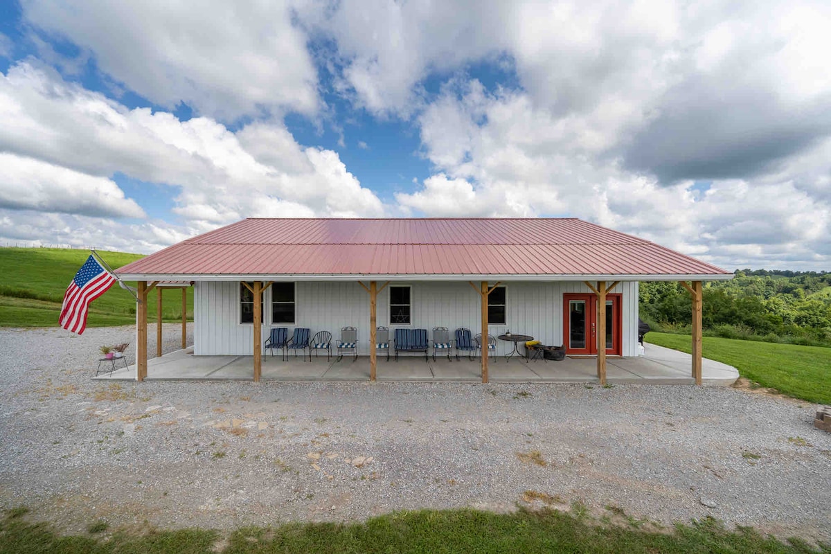 Located 12 mins from the ARK Encounter, your stay @The Lodge, located in the middle of 331 acre family owned and operated cattle farm will provide you comfort and rest. Our countryside is filled with wildlife, beautiful sunrises and sunsets, in God's simply provided peaceful sitting. From walks down the gravel lane, to relaxing outdoors on the covered porch, to convenient cooking accessibility on site, there's much to enjoy here on the Farm without ever leaving.