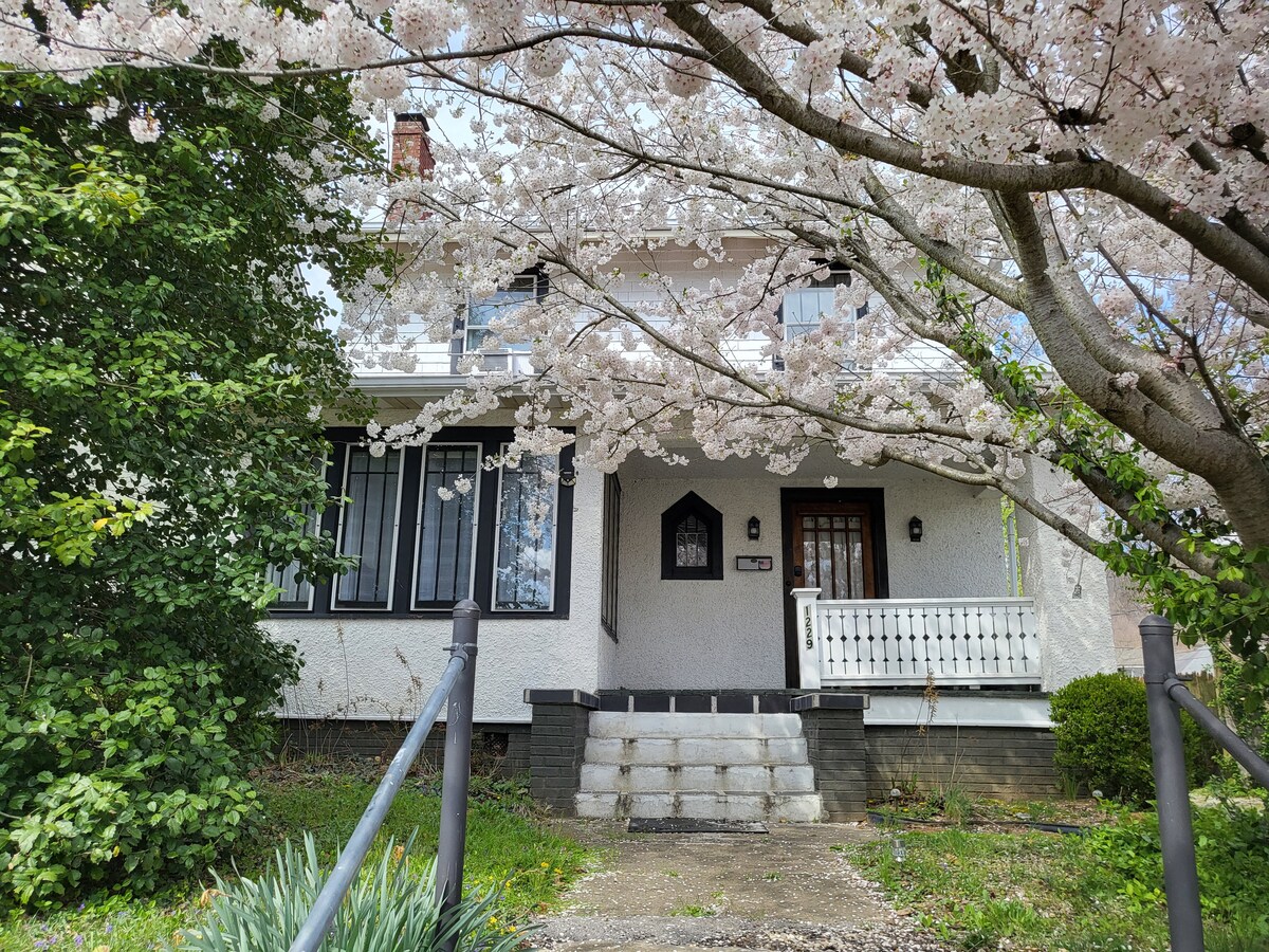 À proximité de restaurants et d'un quartier familial. Le sous-sol dispose d'un canapé convertible, d'une télévision et de beaucoup d'espace pour un matelas gonflable si vous voulez en apporter un pour des voyageurs supplémentaires. Emplacement idéal pour une promenade ou pour promener vos animaux de compagnie. Également une grande cour arrière et un coin salon serein sur le porche pour profiter d'une soirée tranquille. La maison est une maison plus ancienne, donc les salles de bains sont petites. Le propriétaire réside dans la maison à temps partiel, il y a donc des objets personnels et des placards personnels qui ne sont pas accessibles.