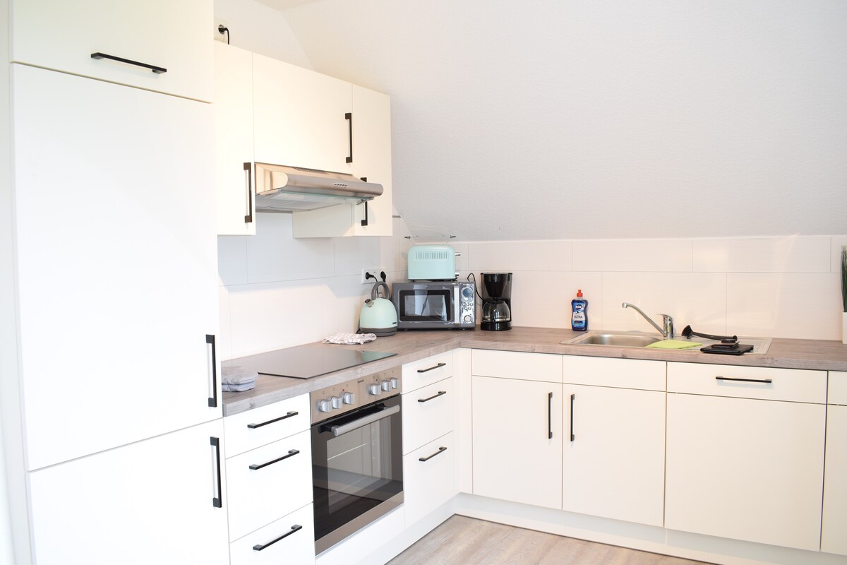 Au milieu des belles prairies et de la vue idyllique, on profite de la tranquillité « pure » dans la petite maison Tjücher Grashaus. Elle offre un jardin verdoyant avec une vue imprenable sur la campagne et les champs, de sorte que vous pouvez confortablement profiter d'une tasse de café sur la terrasse en toute tranquillité. La maisonnette est entièrement éventrée et rénovée et rénovée selon les dernières normes. Un salon-salle à manger baigné de lumière avec cuisine, une chambre, une chambre d'enfant et une salle de bain vous attendent. Wifi rapide, parking privé.