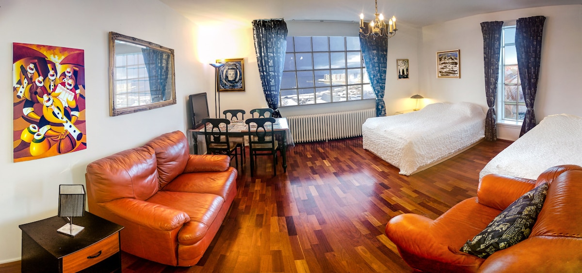 You have exclusive use of this apartment for your entire stay with us - you will not be sharing anything with other guests. A comfortable studio apartment that can accommodate 3 adults. You will feel at home, overlooking the main street of Reykjavik. Absolutely in the middle of downtown Reykjavik. The kitchenette offers microwave, coffee machine, kettle, toaster and basic cooking facilities.