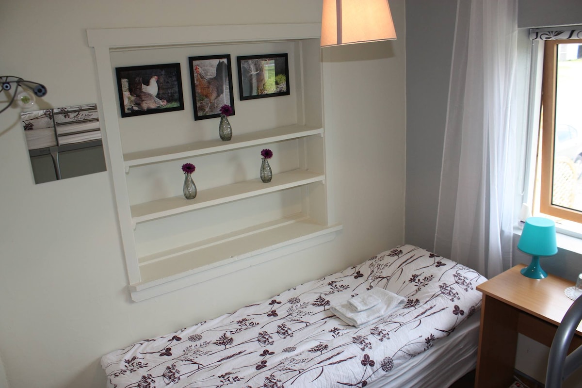Our peaceful, orca-themed apartment offers a spectacular view over Grundarfjörður and famous Mt. Kirkjufell. In the summer you can watch colorful sunsets and in the wintertime witness the Northern lights in clear skies. The apartment is detached from the main building and includes a well-equipped kitchen (yes, there's coffee and tea), a private bathroom, as well as comfortable beds and a seating area for two people. Supermarket, clinic, swimming pool, and waterfront in walking distance.