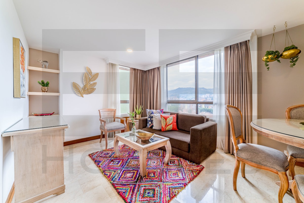RECENTLY RENOVATED -High-speed internet great for remote work -Brand new A/C -Fully renovated design apartment - King size bed -Breathtaking views of Medellín (trust me, worthwhile to stay here) -16th floor -Unbeatable location in Poblado near to Provenza and Lleras Park -Modern amenities -Spacious living area -Smart TV x 2 -Washer & Dryer Tower -Pool and Gym -Coworking space -Restaurant inside the building -Parking lot -Self check-in -24/7 Security