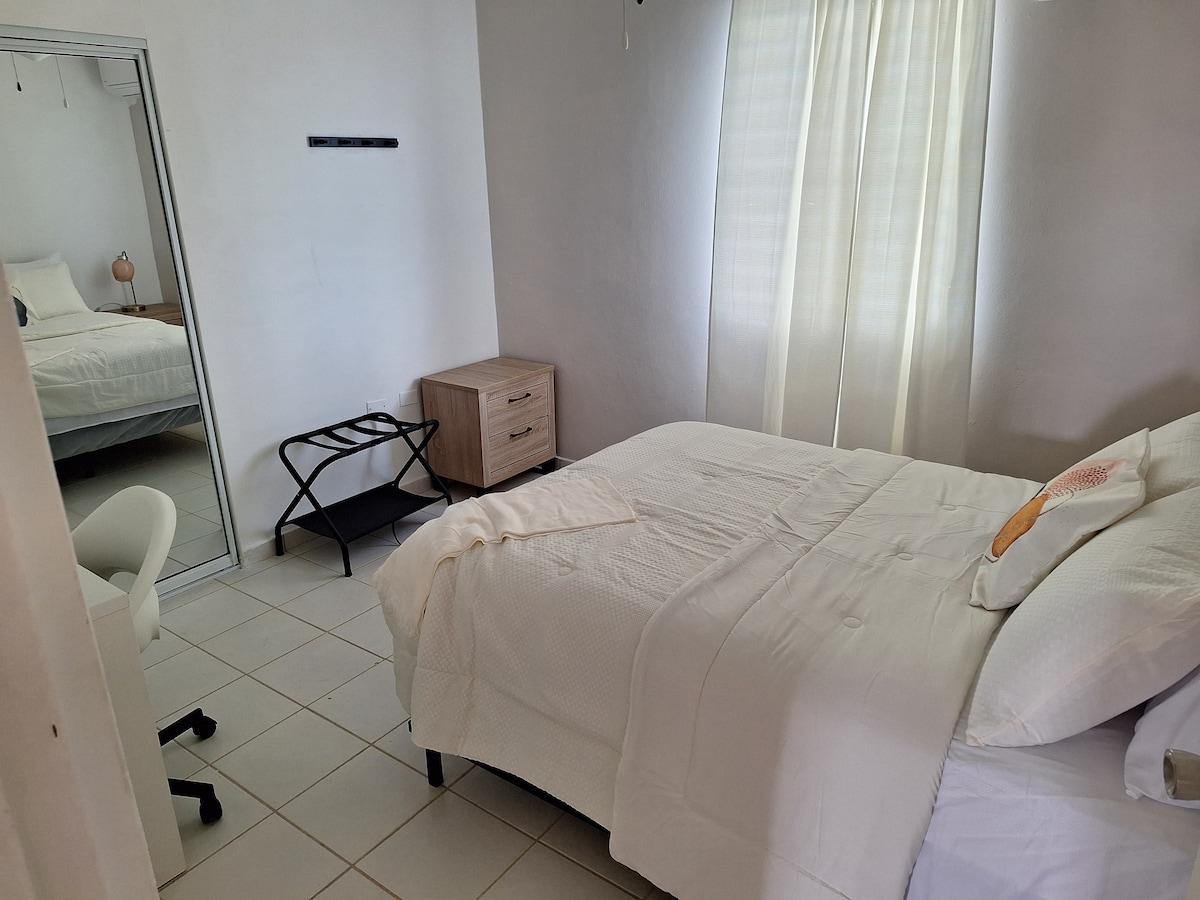 Apartamento en área tranquila de Guaynabo, para 4 personas, tiene 1 habitación con una cama queen y la segunda habitación con 2 camas twin, 1 baño, sala, comedor y cocina con utensilios. Estacionamiento gratis en las facilidades. A 22 min del Viejo SanJuan, 25 min del Aeropuerto Luis Muñoz Marín, 22min playas del Condado e Isla Verde, 50 minutos del Bosque Nacional El Yunque, 12 min de lavaderias, supermercados, Centro Comercial Plaza Guaynabo donde hay cines, bancos, restaurantes y tiendas.