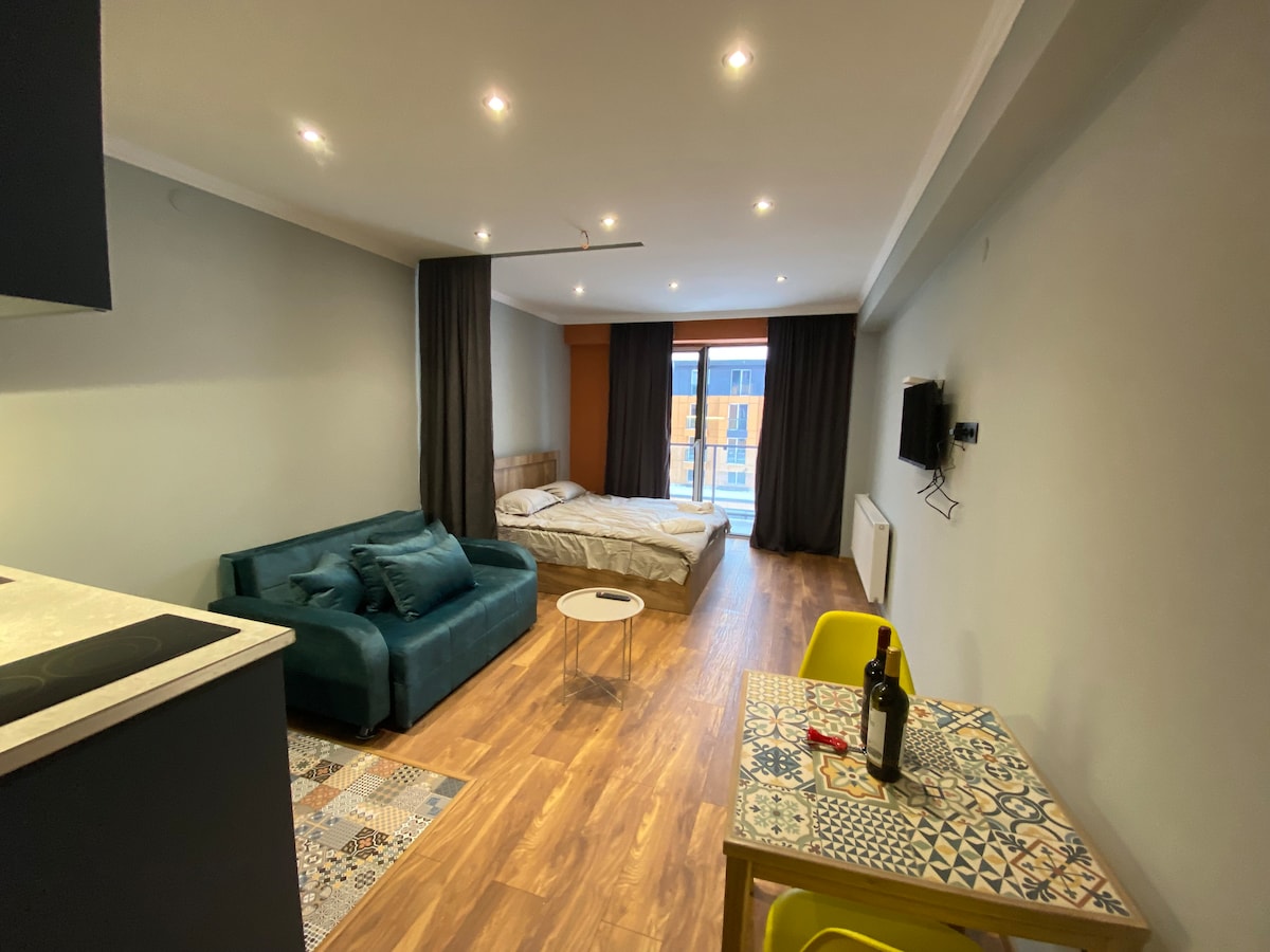 Appartement confortable d'une chambre dans le nouveau Gudauri, dans le complexe Redco 4 Seasons, conçu pour 2 à 4 personnes. Excellent emplacement. À 5 min à pied des remontées mécaniques. Patinoire juste devant l'immeuble. À proximité des restaurants, fast-food et magasins. L'appartement est équipé de tous les équipements nécessaires. Il y a un canapé-lit double dans le salon. Parking privé. Animaux de compagnie non autorisés.