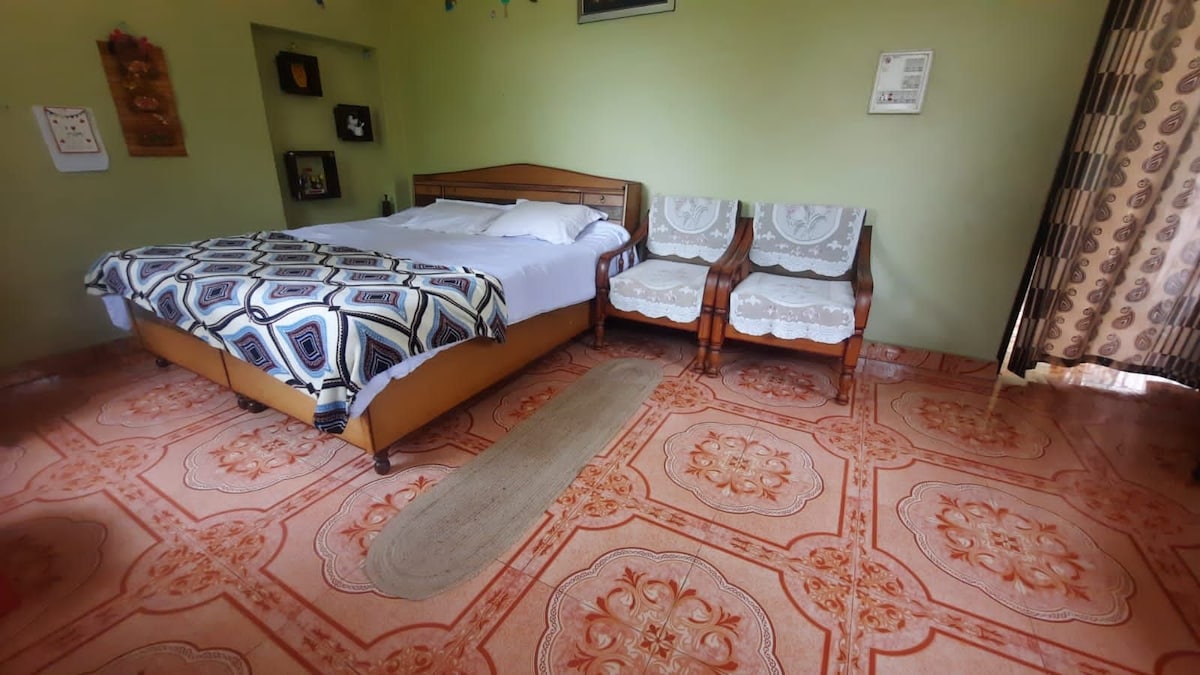 Cette maison en pierre se trouve à 300 mètres du marché principal et à 1,7 km du site d'atterrissage l'épicerie la plus proche est à 50 mètres du chalet C'est une propriété de 1 bhk située au centre et indépendante avec un immense espace ouvert clôturé et une cuisine entièrement équipée. Équipements dans la maison - Télévision connectée 4K,onduleur, wifi, grille-pain, micro-ondes, réfrigérateur, bouilloire électrique, chauffage, geyser, gaz, ustensiles de cuisine,. Purificateur d'eau Ro Équipements à l'extérieur de la maison - Feu de camp extérieur et barbecue, équipement de cricket et de badminton