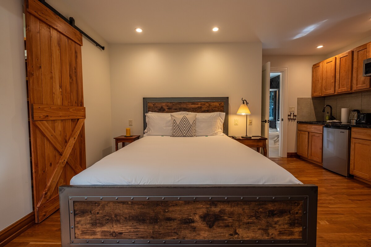 Bienvenue à Creekside ! Cette suite aux finitions exquises et meublée avec goût se trouve à seulement 4 minutes en voiture de l'agitation du « centre » d'Aspen, tout en étant dans un cadre incroyablement calme, serein et relaxant. À l'intérieur, vous trouverez un lit Queen Size luxueux, une cuisine entièrement équipée, un coin salon et un bureau pour les voyageurs d'affaires. À l'extérieur, profitez de l'accès à une magnifique propriété au bord d'un ruisseau où vous pourrez vous détendre sur vos rives privées de Castle Creek aux eaux cristallines.