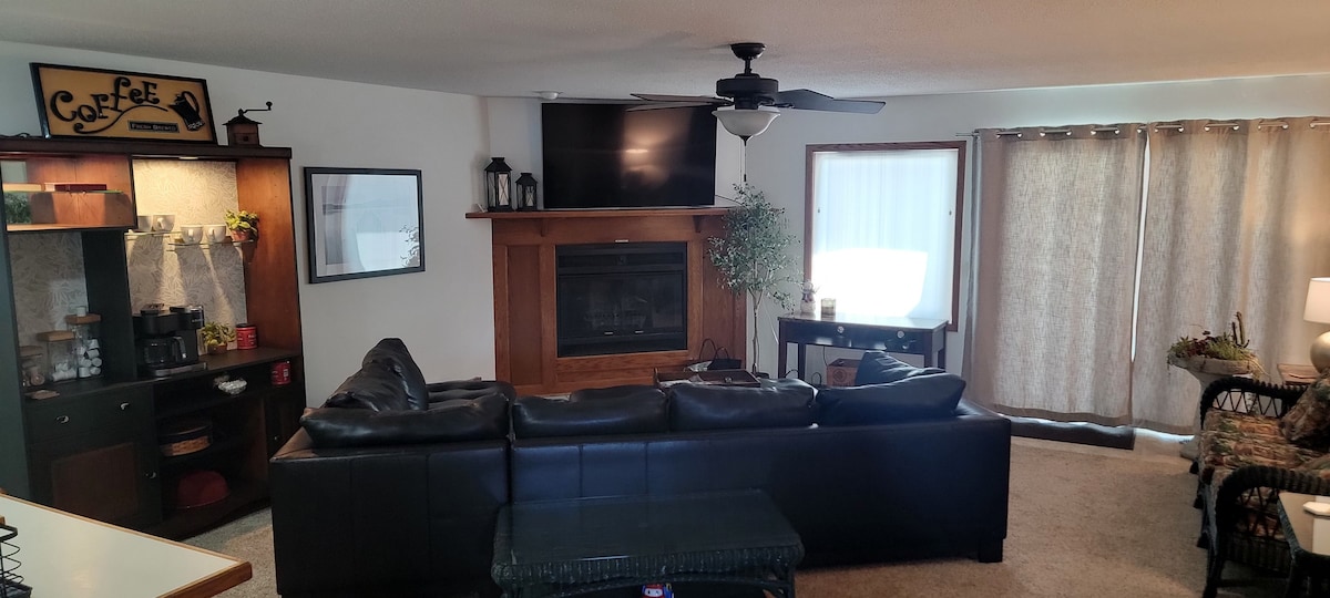 Située dans le pays à seulement 8 miles au nord de l'I-80, sortie 76 entre Des Moines et Omaha, cette maison de style lodge de 4 chambres et 2 1/2 salles de bain est l'endroit idéal pour un week-end tranquille. La maison est parfaitement décorée avec une atmosphère rustique et de montagne, avec beaucoup de sièges pour dîner ou jouer à des jeux ensemble, ou se détendre sur des canapés et des chaises dans le salon. Il y a un grand patio à l'extérieur pour profiter du barbecue ou de votre tasse de café au soleil.
