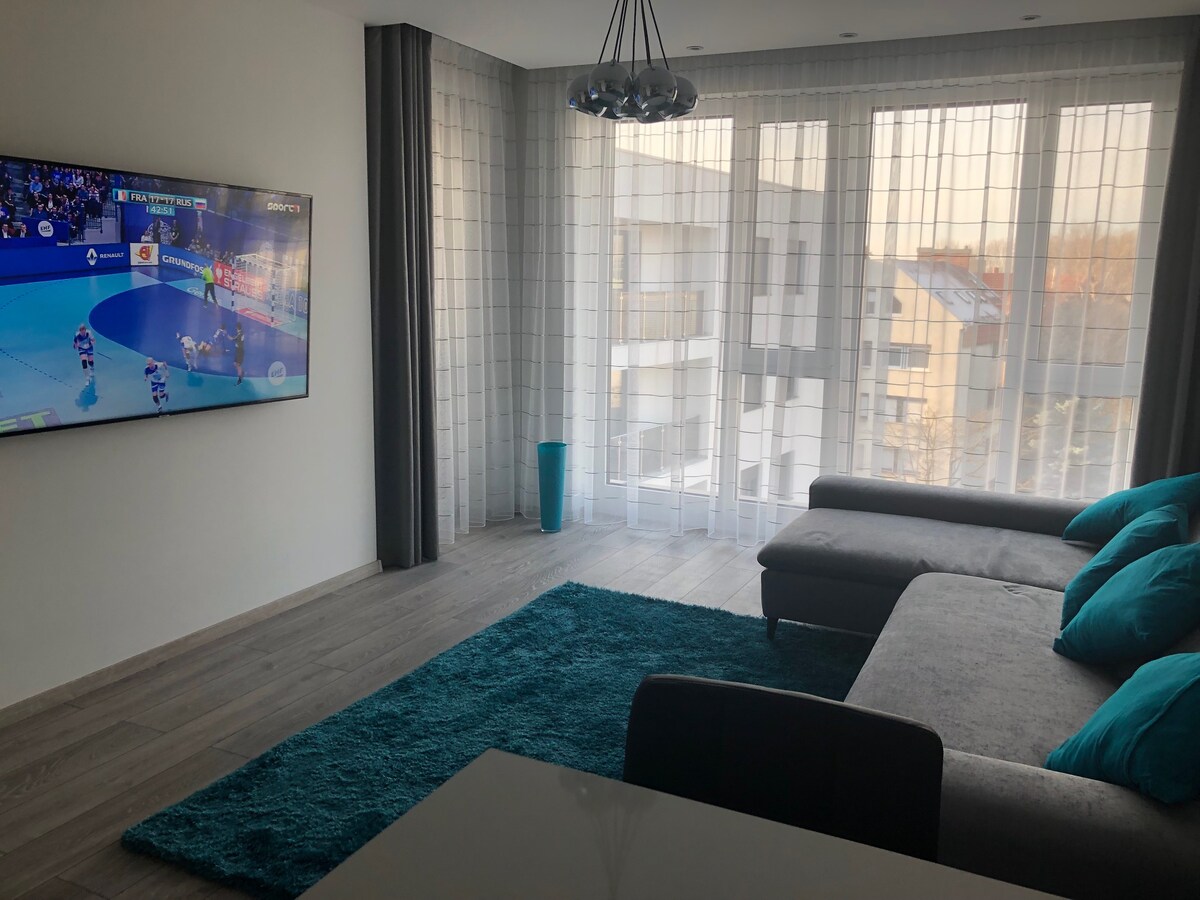 Vintage Home Où les valeurs du passé et le confort du présent s'harmonisent entre eux. L'appartement est moderne, idéalement situé à proximité du centre ville. Le parking est gratuit dans la région! Les équipements élevés de l'appartement (comme le sauna, la baignoire de massage ou les télévisions intelligentes) garantissent que le client ne s'ennuie pas par mauvais temps. Le balcon peut être un endroit idéal pour des conversations intimes ou un dîner confortable. NTAK: MA21007071