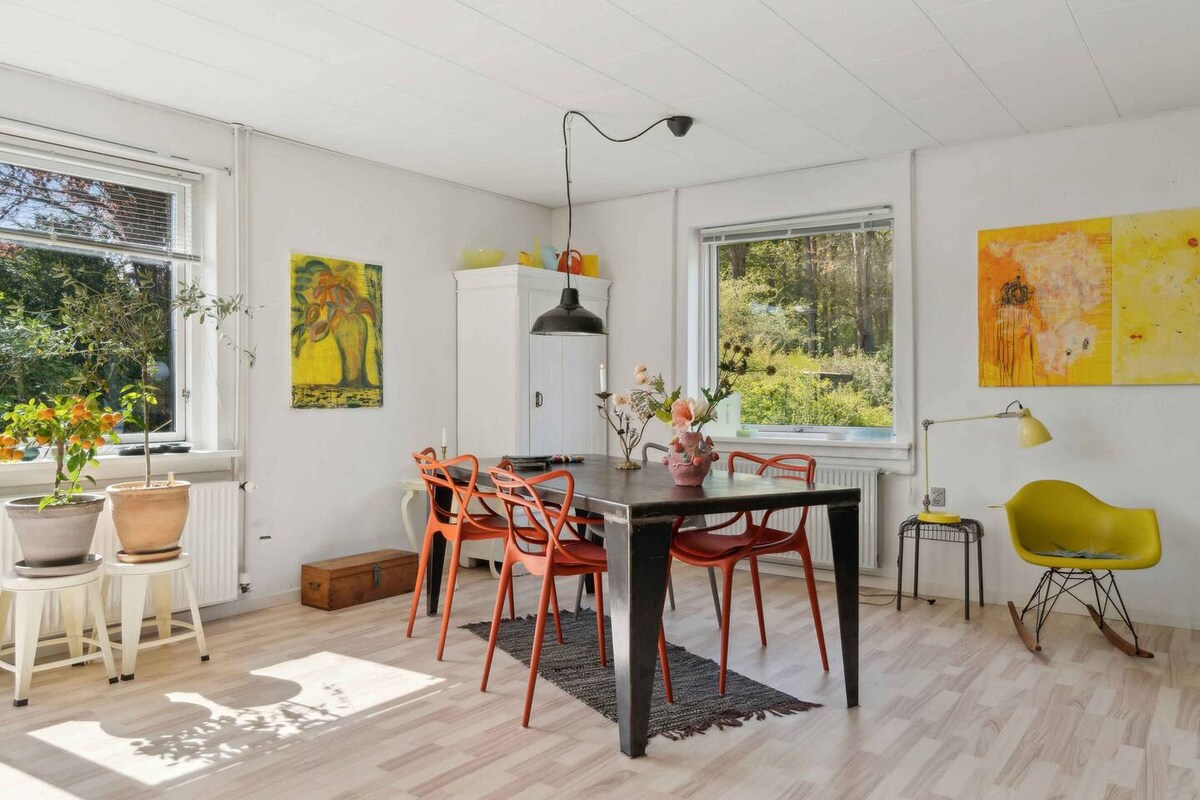 Il y a une intimité absolue sur le grand terrain clos vert, bien que la ville et la plage ne soient qu'à 5 minutes à pied. La maison principale date de 1924 et apparaît à bien des égards dans l'état d'origine. Une maison atmosphérique et authentique qui, de la meilleure façon, témoigne que Tisvildeleje est une ville balnéaire bien visitée depuis plus de cent ans. Sur le terrain, il y a trois autres « maisons », chacune avec son propre charme ; la maison d'hôtes de la cour sur deux étages, l'annexe verte dans le jardin ainsi que la cabane isolée.