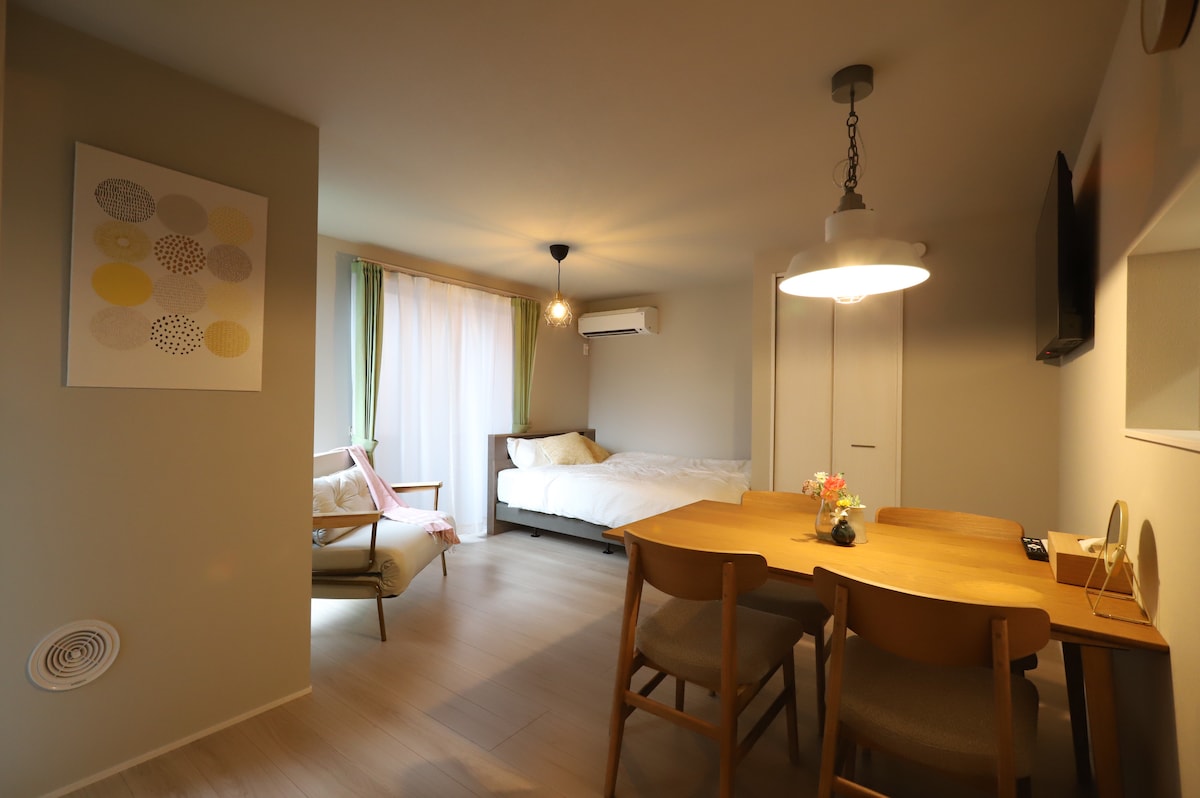 Nous avons rénové un studio dans l'un des quartiers résidentiels les plus populaires de Tokyo. La gare la plus proche de l'appartement est la gare de Mitaka, à partir de laquelle vous pouvez rejoindre la gare de Shinjuku en seulement 14 minutes sans aucun transfert ! La chambre est équipée d'une mini-cuisine et d'un lave-linge, et elle se trouve à une minute à pied du supermarché. Recommandé pour les séjours longue durée. Dans un quartier résidentiel calme, vous pourrez vous détendre et profiter de votre séjour tout en vous mêlant à la vie quotidienne de Tokyo !
