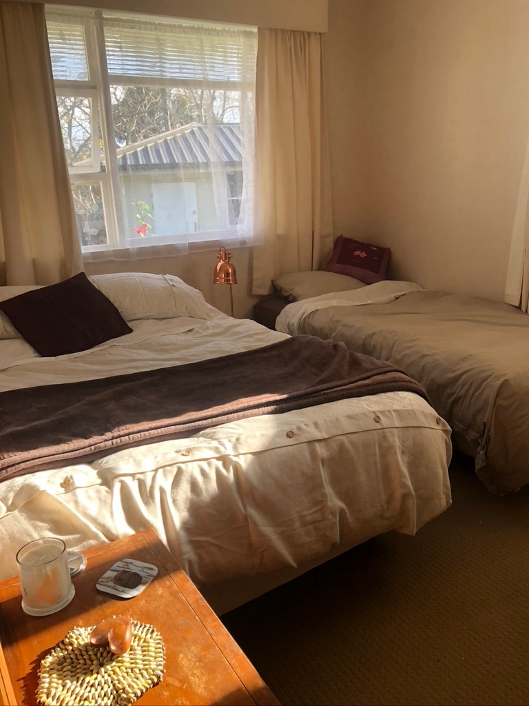 Beautiful and spacious guest suite with separate bathroom and private entrance. The main room has a king-size bed and a comfortable lounge area with a TV, coffee/tea/breakfast-making facilities and a dining area. The second room has two single beds. The bathroom is large and modern and was brand new in 2019. There is a covered outdoor deck with rural views to neighbouring farms and there is ample parking for cars/trailers/campervans. Continental breakfast is complimentary.