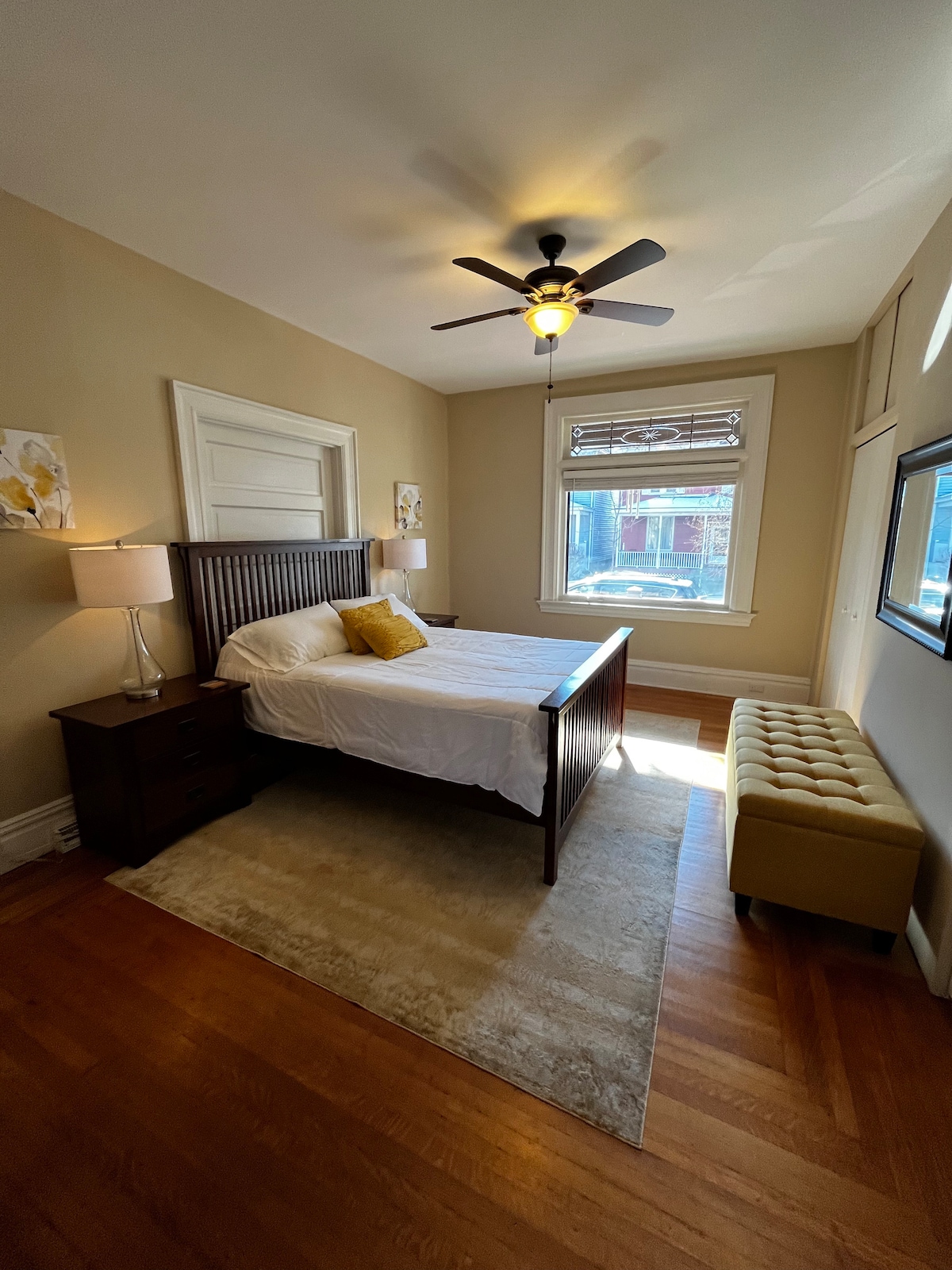 Bienvenue ! Nous sommes ravis de partager avec vous notre chambre préférée dans une maison coloniale géorgienne de 1895. Cette suite confortable avec véranda est idéale pour deux personnes ou une famille avec un jeune enfant. Situés dans un quartier sûr, calme et merveilleux de Pittsburgh, nous sommes proches du zoo et de l'hôpital pour enfants, et à quelques minutes en voiture du centre-ville. Cette suite dispose de sa propre entrée séparée, d'une salle de bain et d'un coin cuisine. Les fenêtres du mur au mur donnent sur la cour avant, la cour et la maison victorienne de notre voisin.