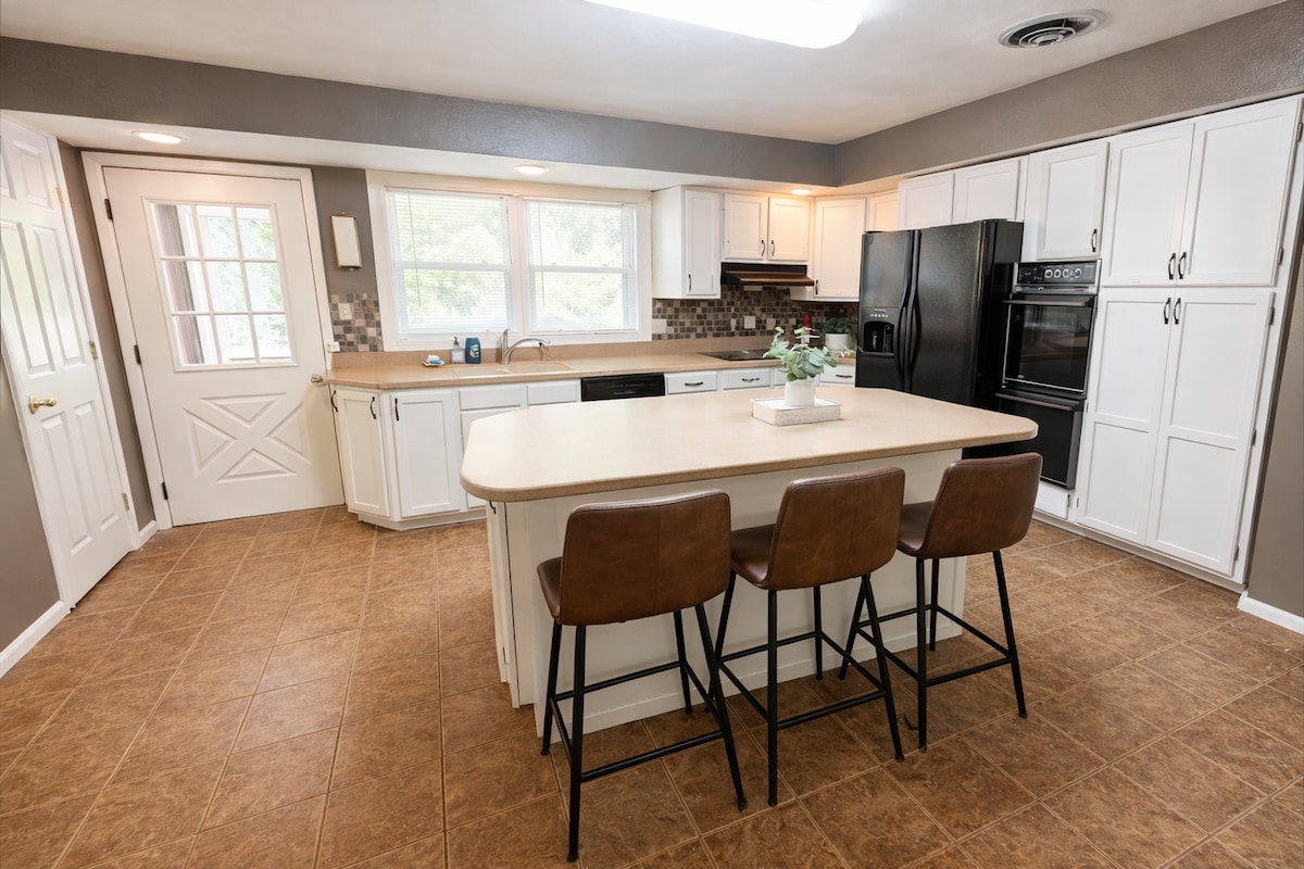 Nichée à seulement 2 pâtés de maisons de la prison historique de Carthage, notre maison récemment rénovée vous invite à découvrir un mélange de confort moderne et de patrimoine local. Un trajet tranquille de 27 minutes en voiture vous relie au temple de Nauvoo, tandis que les restaurants locaux, les fast-foods et une épicerie répondent à tous vos besoins. Profitez d'une cuisine bien équipée, d'une salle à manger spacieuse, d'une connexion Wi-Fi rapide et de téléviseurs intelligents. Nous sommes impatients de faire de cette maison votre maison loin de chez vous !