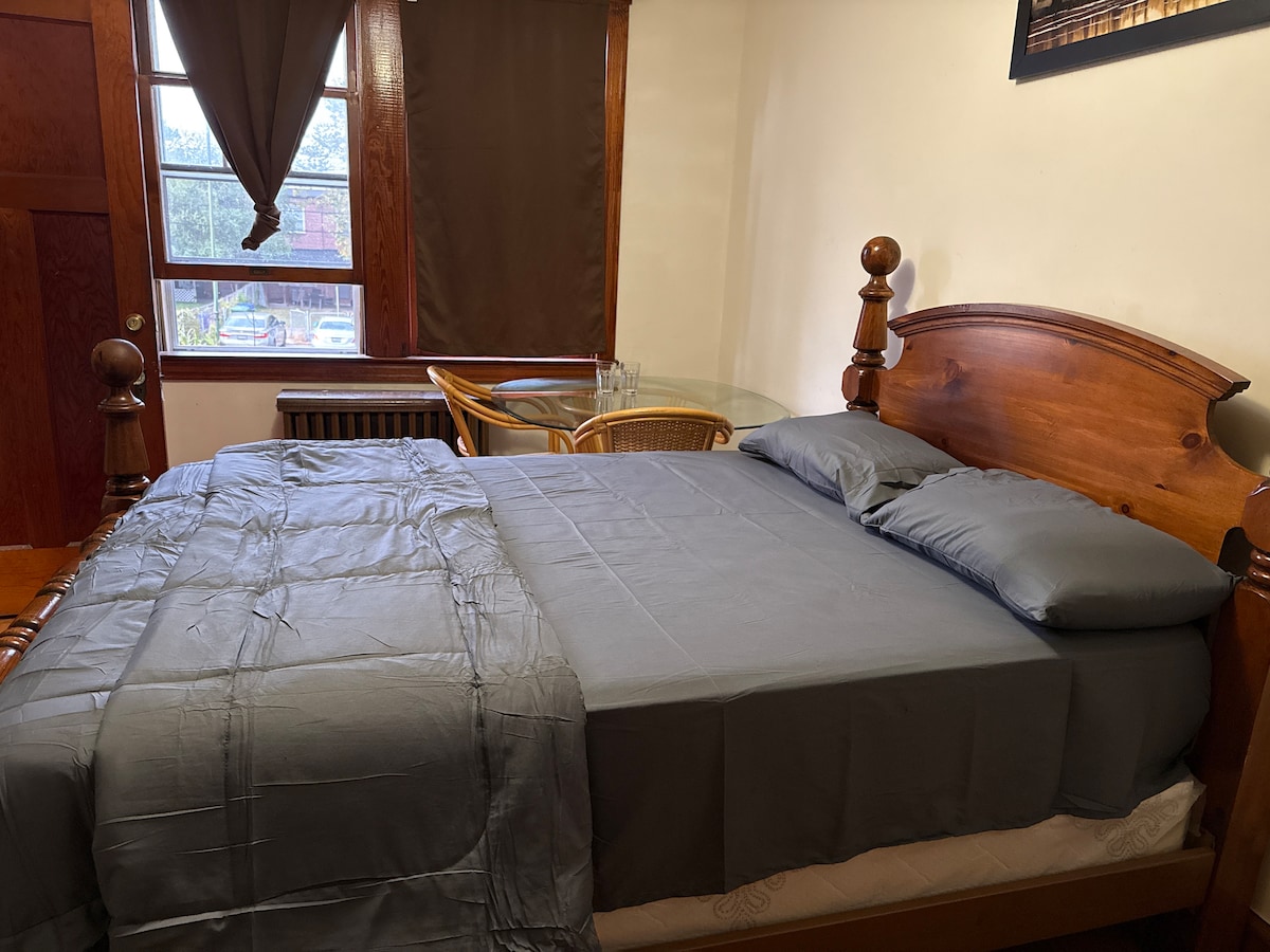 C'est une maison de ville avec une ambiance européenne. La cuisine est située dans ce que l'on considérerait comme le sous-sol. Cependant, vous avez un accès direct à la cour arrière qui est un cadre privé agréable. De nombreux bars, restaurants et épiceries dans un rayon de 5 miles. Vous êtes à 20 minutes de tout ce que vous imaginez. Départ rapide à 10H L'auto-enregistrement est après 15 H Des caméras de sécurité Ring sont utilisées sur les entrées avant et arrière.