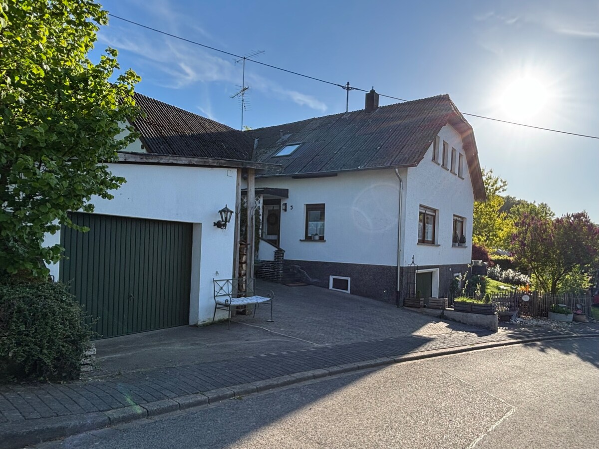 Dans l'appartement de 60 m² avec entrée privée, tu trouveras tout ce dont tu as besoin pour des vacances. 1 lit double + 1 canapé-lit - place pour max. 4 personnes - Parking devant la maison En quelques minutes, on est déjà à pied dans la forêt, sur le Michelsberg culminant à 588 mètres et on peut y faire des randonnées dans toutes les directions. En voiture, on est en une bonne demi-heure au Nürburgring, à l'Ahr, au Ruhrsee ou au Phantasialand Brühl. Commerces à 10 km. Chiens les bienvenus après accord.