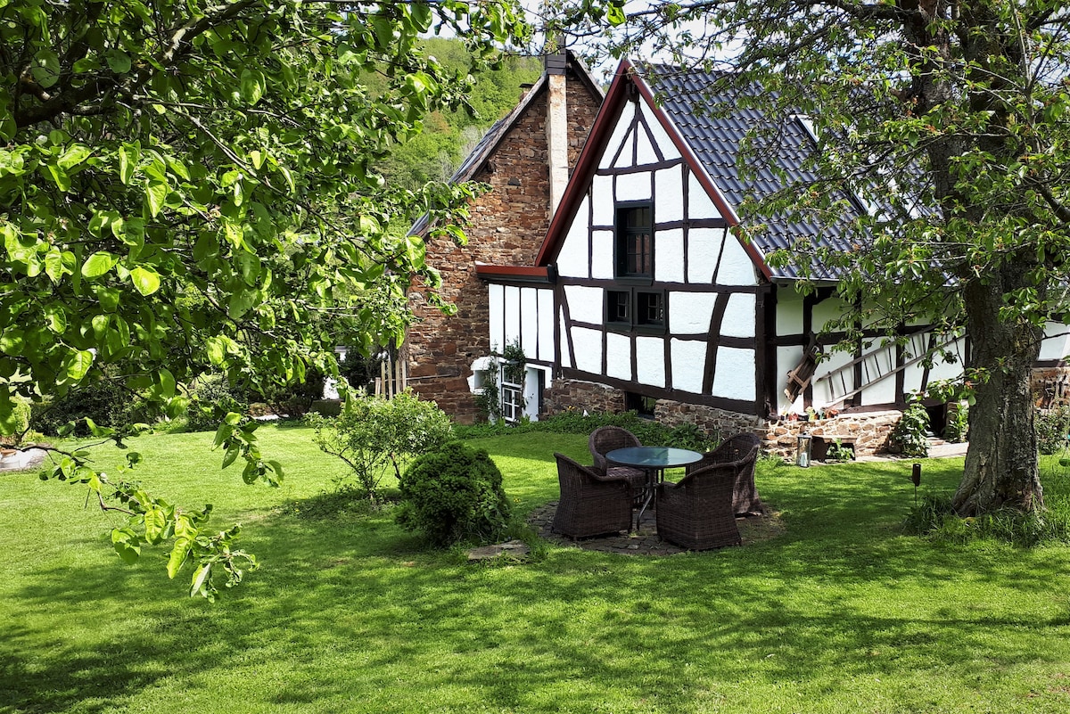 Profite du charme original de la maison à colombages restaurée avec amour. Très bien situé avec une terrasse ensoleillée à la source de l'Ahr, le lac et divers restaurants. Jakobsweg, Eifelsteig et Ahrradweg se croisent ici. Vous avez toute la partie supérieure de la maison pour vous tout seul ! L'appartement n'est pas verrouillable car il y a une issue de secours. Presque tous les clients sont extrêmement satisfaits ! Ne convient pas aux personnes allergiques, aux personnes à mobilité réduite et aux personnes sensibles au bruit (cloches). Nous nous réjouissons de votre visite !