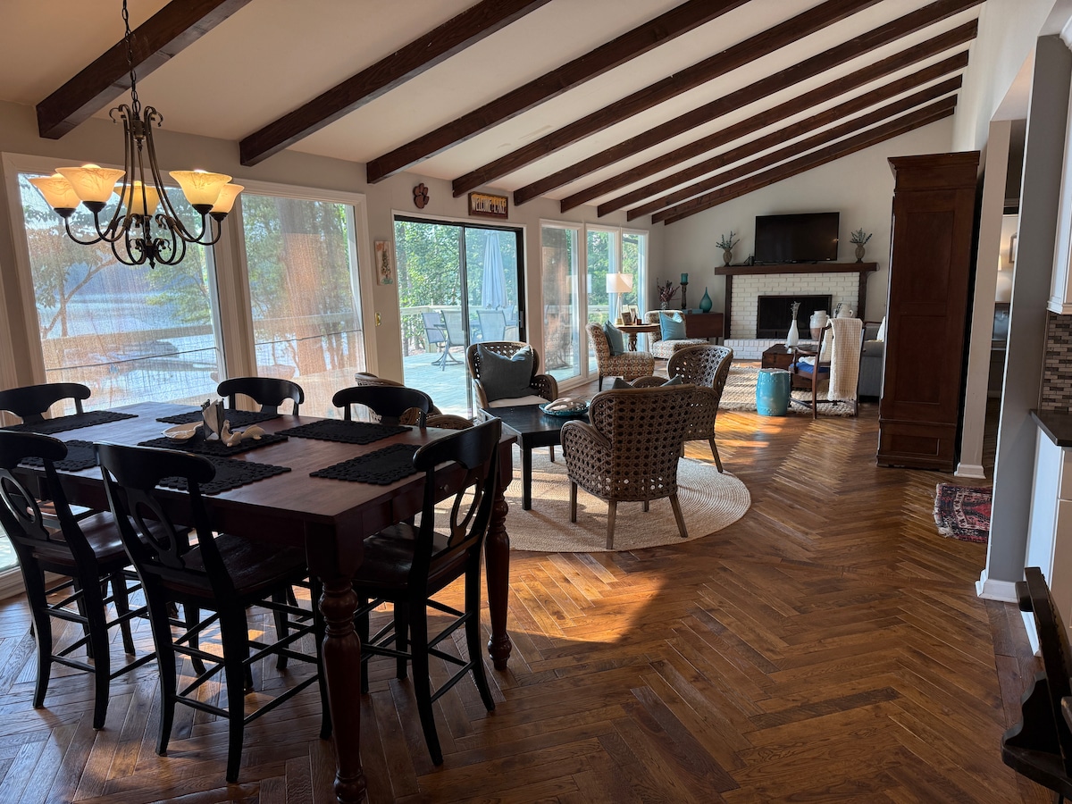 Une unité de niveau inférieur de 1 400 pieds carrés. L'espace dispose de deux chambres et de deux salles de bains complètes, d'un grand salon et d'une deuxième pièce plus petite avec 2 canapés convertibles. De grandes fenêtres et des doubles portes mènent à un bel espace extérieur ouvert. Cuisine et salle à manger modernes, parfaites pour un bon repas et une belle vue. Nous disposons également d'un sauna infrarouge pour 3 personnes avec vue sur le lac, Bluetooth et luminothérapie. Vous pouvez également profiter de notre quai, avec des eaux profondes et une vue imprenable. Nous espérons rendre vos vacances agréables et relaxantes