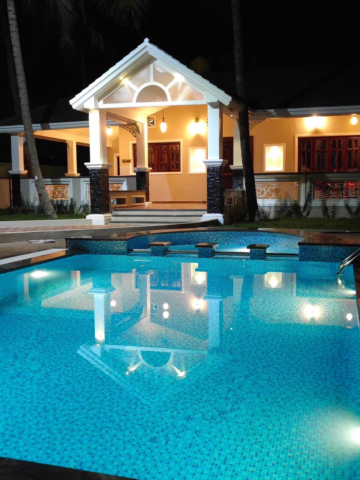 Escape to our serene retreat featuring 5 tastefully designed rooms, each with its own private sit-out. Gather with family & friends in our cozy lounge, perfect for conversations, games, or simply unwinding. Near major sights, yet quietly nestled in nature for a relaxing, stress-free stay. Enjoy seamless WiFi & 24/7 power backup. Entire property is given to one group at a time; rooms provided based on 2 guests per room. Make your evenings special with BBQ and bonfire experiences (extra charge).