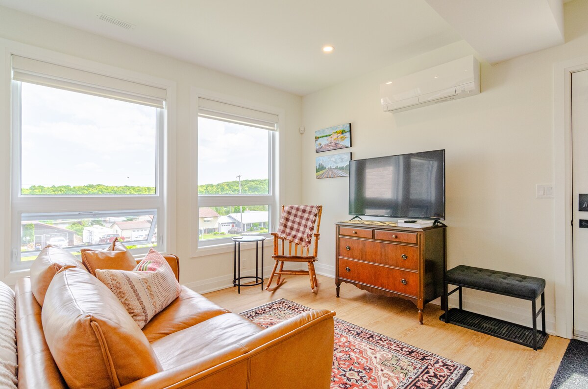 Cet appartement chic et moderne est situé dans la maison du 18ème siècle avec de hauts plafonds et de grandes fenêtres dans le quartier populaire d'East Hill. Ce quartier est très accessible à pied et à proximité immédiate de toutes les commodités et sites touristiques, y compris : à 10 min à pied du lac, à 3 min à pied du centre-ville, du marché fermier, du musée Glanmore House et des sentiers le long de la baie de Quinte et de la rivière Moira. Vous pouvez également faire un court trajet en voiture (20 minutes) pour découvrir les établissements vinicoles du comté de Prince Edward et le parc provincial Sandbanks.