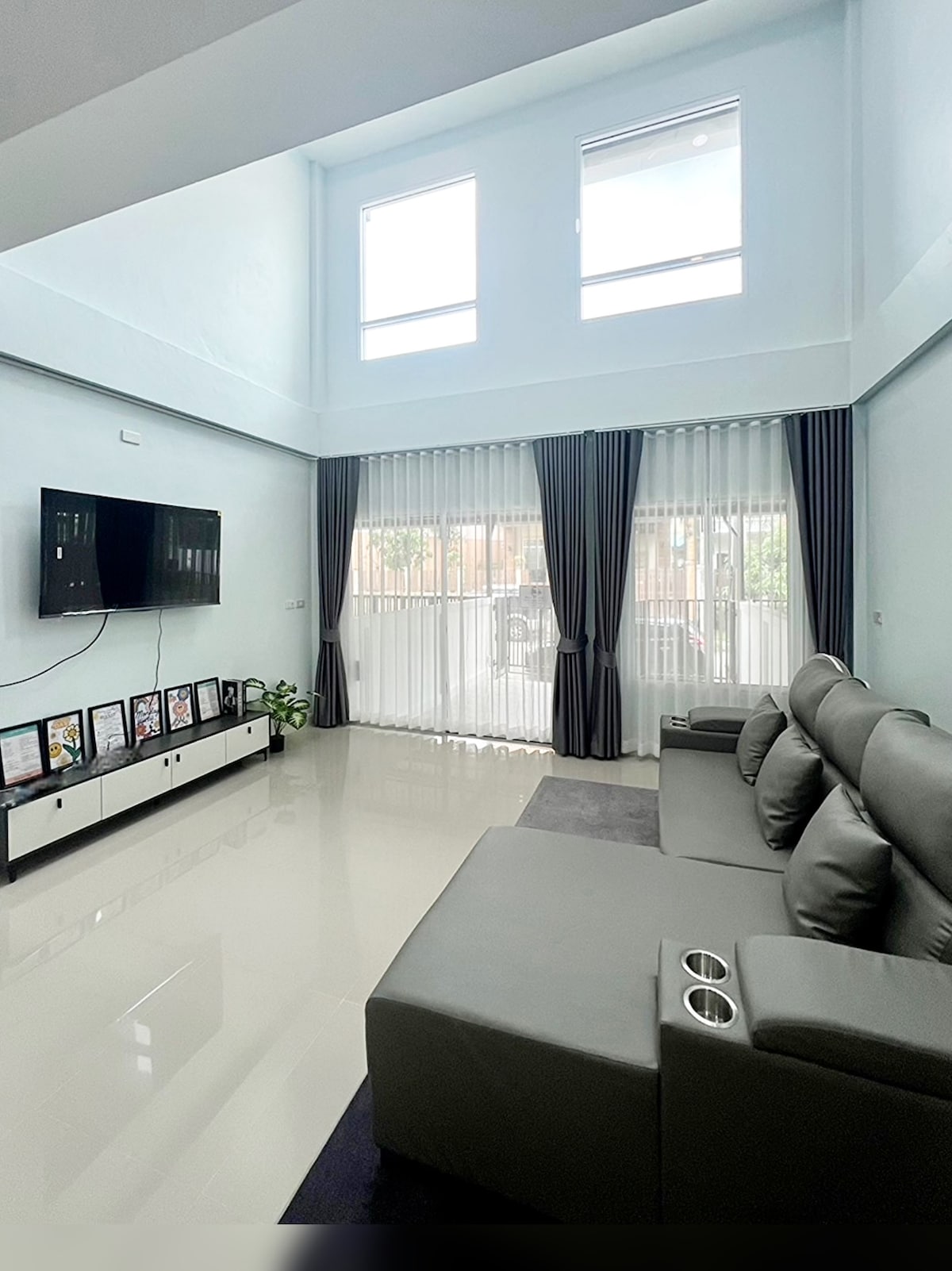 🚘5 minutes to city center, 2.5 km away. 🏡 **Details: * 3 floors, 3 bedrooms, 4 bathrooms * 3 king-size beds +1 3.5ft. + 2 sofa bed +2 thin floor mattresses. * High-speed Wi-Fi * Dining table for 6 * Water heater * Hairdryer * soft kitchen * Washing machine, iron * 1 indoor parking space ✨ *Our Home: * Quiet and peaceful atmosphere * Multiple entry and exit routes * street food area (สายกลางเขต8) * Easy access to amenities * Spacious area suitable for families * Private and tranquil environment