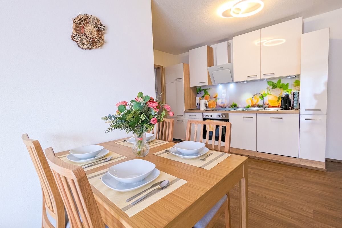 Bienvenue dans notre appartement de vacances moderne dans les maisons ! Votre détente est assurée : la taxe de séjour est déjà incluse, et l'appartement offre café, thé, épices et plus encore. Profitez de l'emplacement idyllique, du climat doux et de l'air pur – les maisons ne sont pas une station thermale primée pour rien. Que ce soit pour le repos ou des vacances actives, il y a de nombreuses possibilités de loisirs ici.