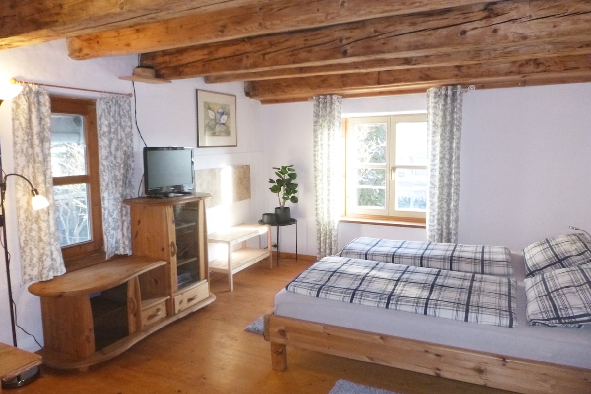Appartement confortable dans une ancienne ferme, à 3 km de Memmingen, entouré de belles forêts avec des sentiers de promenade, à environ 7 km de l'aéroport de Memmingen et du centre-ville, Lac de Constance accessible en 40 min environ, les domaines skiables des Alpes de l'Allgäu en 60 min environ. Le logement est adapté pour les couples, les voyageurs en solo, les aventuriers, les voyageurs d'affaires, les familles (avec enfants) et les amis à fourrure (animaux de compagnie). Prix de l'appartement pour 2 personnes, chaque personne supplémentaire 15 €.