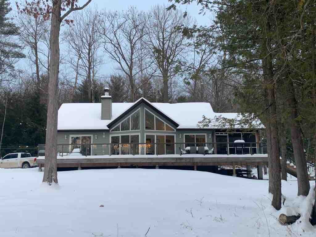 Profitez de la vie de chalet sur l'eau - Parfait pour les familles avec enfants ou une escapade relaxante entre amis ! Vue pittoresque, beau chalet avec accès à l'eau, un quai privé et un jacuzzi ! Nombreux jouets d'extérieur tels que des kayaks et des planches de paddle. Les enfants peuvent profiter de la grande structure de jeu extérieure et de nombreux jouets avec lesquels jouer ! Lancez votre bateau ou Seadoo à seulement 5 minutes de là ! * Nous avons une caméra de sécurité face à la porte d'entrée sur le porche et l'allée qui est allumée en tout temps.