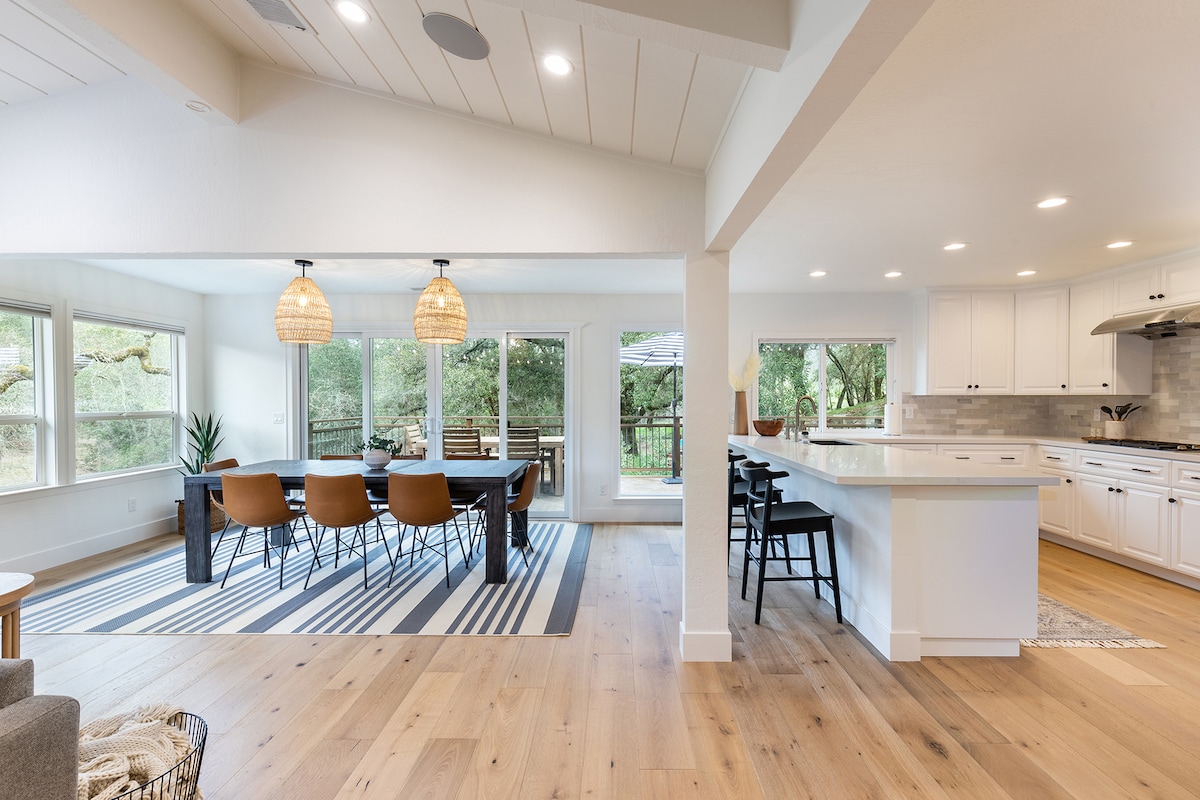 Détendez-vous avec toute la famille dans cette maison paisible et privée à quelques minutes de Healdsburg Square, du complexe hôtelier Montage et des vignobles de Dry Creek/Alexander Valley. La maison rénovée dispose d'une cuisine ouverte, de deux chambres familiales et d'un jacuzzi étincelant sur 1,5 acre privé entouré de vignes et de chênes. Faites un tour en vélo jusqu'à la ville ou dirigez-vous directement sur Chiquita Road pour profiter de certains des meilleurs circuits cyclistes au monde. À 2,4 miles du Montage Resort. À 2,5 miles de Healdsburg Square. Bienvenue dans la région viticole !