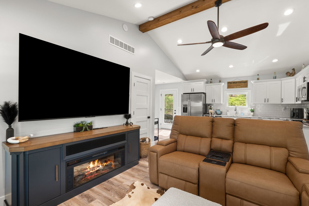 La chambre est une efficacité autonome avec une kitchenette, des rideaux occultants et un lit Queen Size inclinable. Il dispose d'une place de parking désignée et d'une entrée séparée. L'unité dispose d'une salle de bain privée, d'un dressing et d'une kitchenette. Il dispose également d'un réfrigérateur, d'une cafetière, d'un micro-ondes de bureau, d'une télévision intelligente de 42", d'un four à air chaud Ninja et d'un canapé. Porche privé avec table et chaises. Place de parking unique proche/sécurisée.