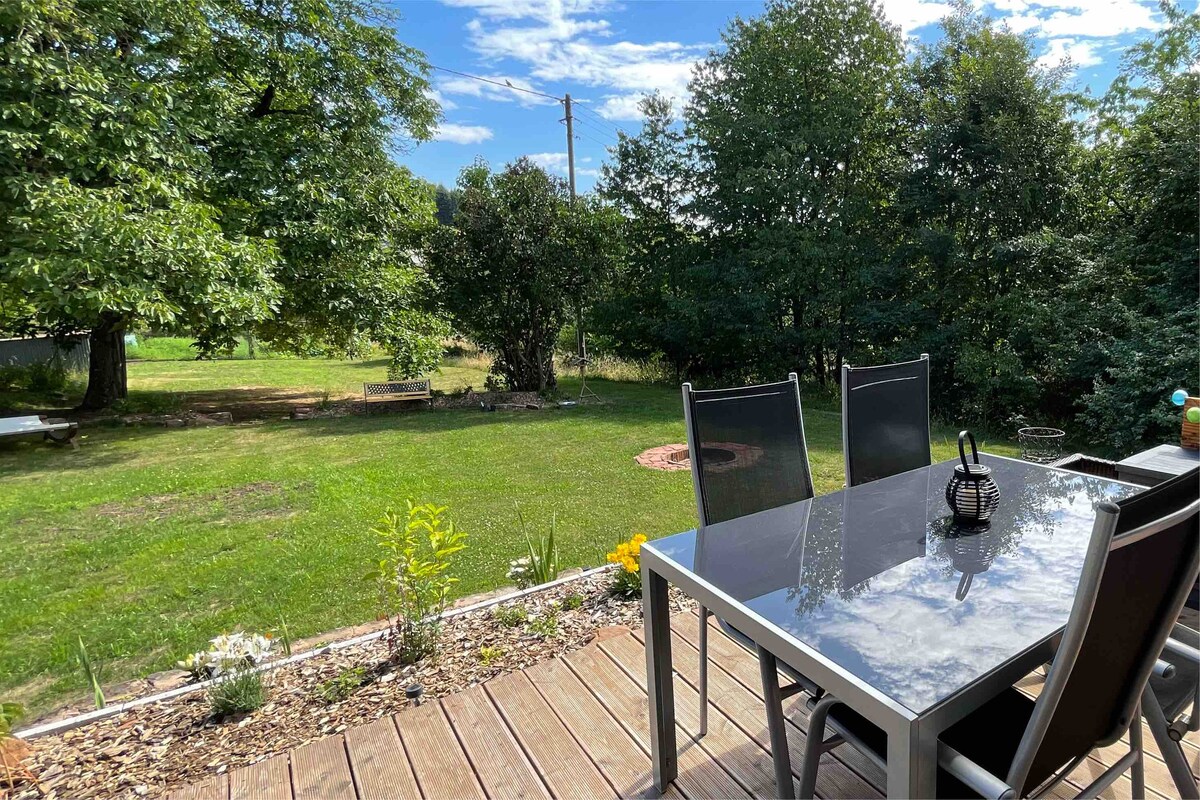 « La petite maison de sorcière de Luise » est nichée dans un cadre idyllique à la lisière de la forêt, à la porte de la région d'excursion populaire du Dahner Felsenland dans le Palatinat-Sud-Ouest. Ainsi, il y a une variété de possibilités d'excursions et de randonnées directement devant la porte. Comme alternative en cas d'occupation, vous pouvez utiliser Airbnb L'oasis naturelle de Luise est à votre disposition.