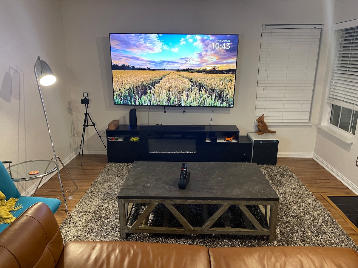 Amenez toute la famille dans notre grande maison avec beaucoup d'espace pour se détendre et s'amuser. Profitez de notre retraite confortable et élégante de 5 chambres et 4 salles de bain complètes. Profitez de soirées cinéma dans le théâtre privé, restez actif dans la salle de sport et détendez-vous dans la cour arrière spacieuse. Avec une salle de jeux, une table de billard et un baby-foot, le divertissement est sans fin. De plus, explorez la scène gastronomique animée et les parcs à proximité. Votre escapade idéale vous attend !